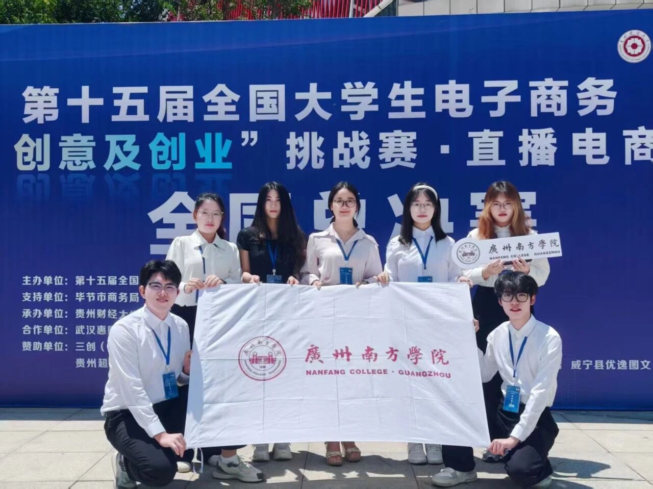 由陈潇、蔡捷微老师和郭健文董事长、谭富升运营总监指导,彭惠琳、叶惠、李丹坪、李永华和高明利同学组成的“南波one队”获得国家级一等奖。团队秉持“直播电商不止于商业,更要链接公益与民生”的理念,以“抖音公域破圈+视频号私域沉淀”为模式。通过主题化直播、AI赋能、三阶短视频运营及“知识胶囊”内容构建,深度联动助农、文旅、公益领域,既验证大学生直播创业可行性,更以商业实践为乡村振兴、青年发展注入青春动能。