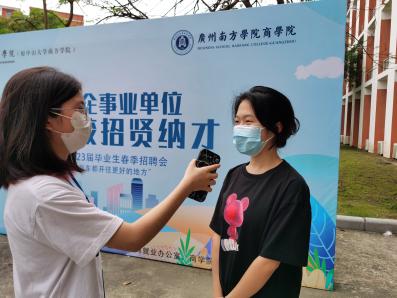 工作人员采访一些参会同学,他们向我们分享了参与此次招聘会的前期准备以及收获。一位应届毕业生与我们分享:首先是提前查看与自身专业对口很感兴趣的企业和岗位;其次根据自己的求职方向,有针对性的制作简历;最后是调整好自己的心态,树立坚定的自信心。另外,一位大三的同学告诉我们:本次招聘会参与企业种类较多,在面试过程中,可以更直接了解到企业对学生所需的校园经历和专业技能,对自己以后就业选择有一定帮助。