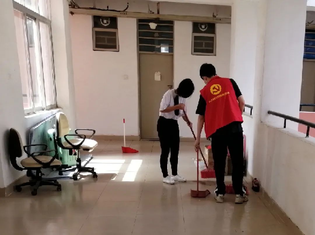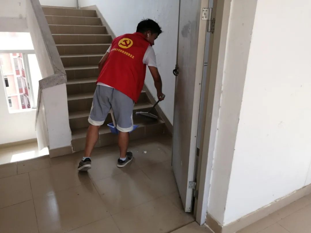活动当天,东区主场的“小蜜蜂们”在班长吴丽平、赵焱博等班委们的带领下开展聚贤楼8号地下及楼层清扫,小蜜蜂们各司其职,男女合作,有序细致地进行楼层清扫。