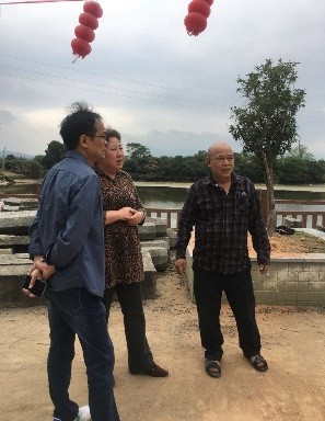 随后,王亚欣教授一行与村干部及理事会成员前往祠堂前广场、风水池等进行实地考察。