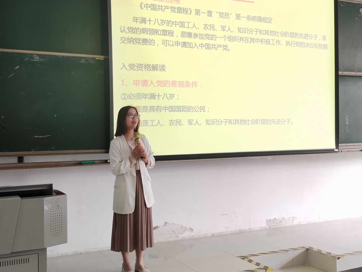 3月16日,韩露老师在10教106为入党积极分子们讲授了理论培训第三课——“明确入党条件、了解入党程序”。首先韩老师结合党章为与会成员介绍了成为入党积极分子的两种方式,接着讲解了入党条件和党员发展的工作流程,并结合视频内容对入党条件进行了详细的讲解,然后重点阐述了党员的权利和义务。她最后表示道希望各位在座的入党积极分子们通过此次课程的学习在以后的学习生活中会自觉以共产党员的标准严格要求自己,找差距补不足,力争将入党由一种愿望变为一种现实,使自己早日成为一名光荣的中国共产党党员。