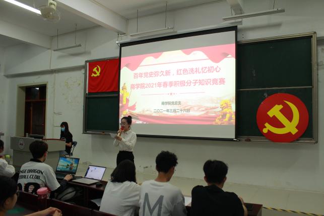 为提高入党积极分子政治素养及党性修养,更好地“学党史、忆党迹、强党性”,艾弗森贝博ballbet官网党总支于2021年3月26日晚上在10教106举行以“百年党史弥久新,红色洗礼忆初心”为主题的春季入党积极分子党史知识竞赛。参加本次知识竞赛有学生第三党支部书记陆正祥老师、学生第四党支部副书记张燕老师、学生第五党支部副书记刘梦梦老师及各支部入党积极分子。