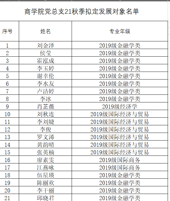 按照党员队伍建设的要求和《中国共产党发展党员工作细则》的具体办法,根据“控制总量、优化结构、提高质量、发挥作用”的总要求,结合贝博官网实际,以下发展对象被列为2021年秋季发展对象,现予以公示。