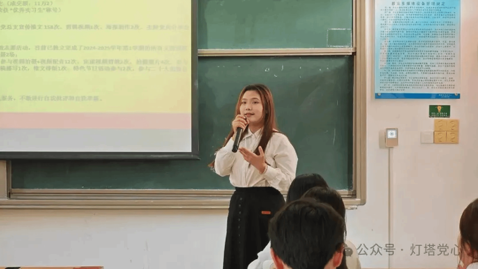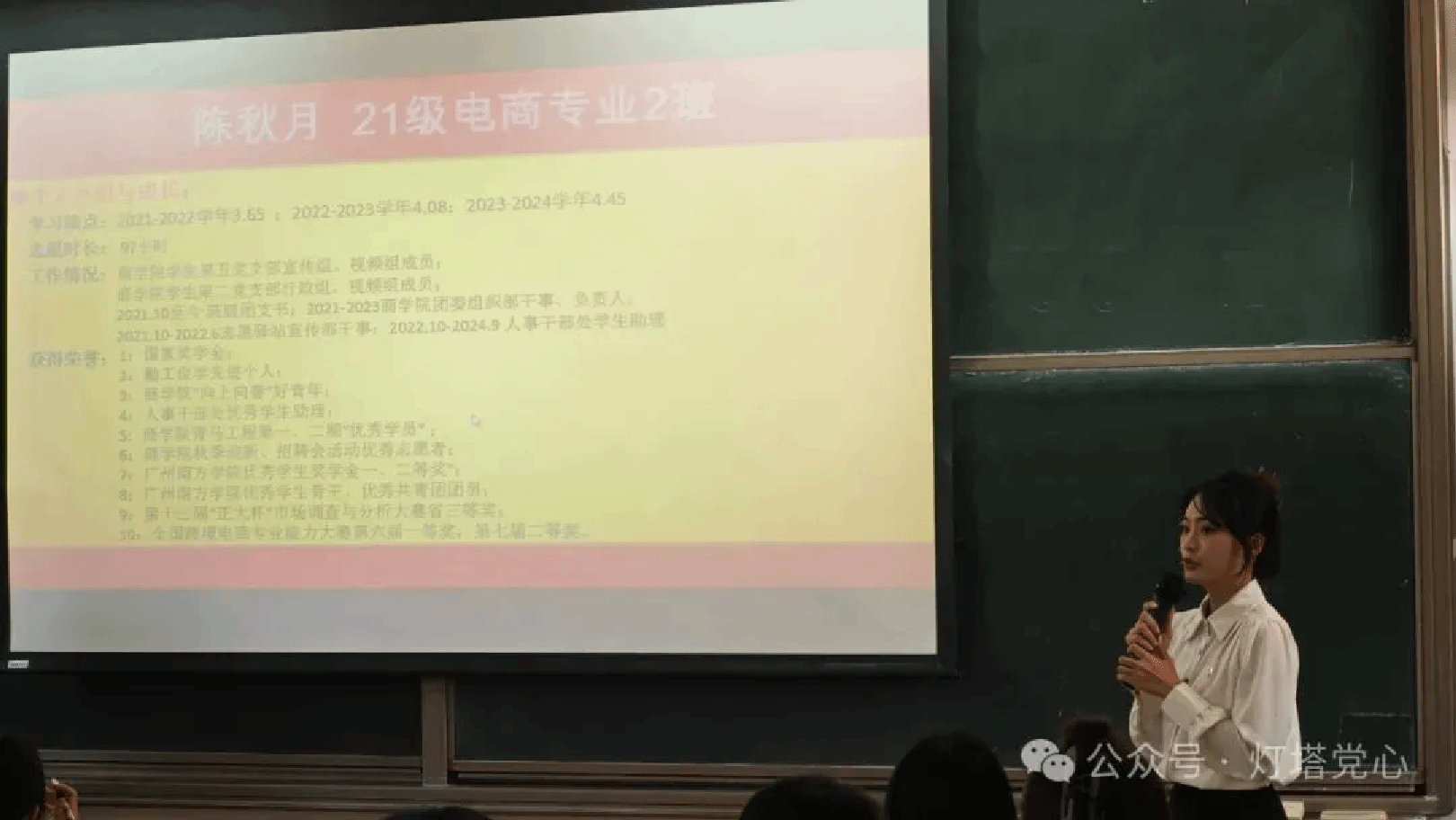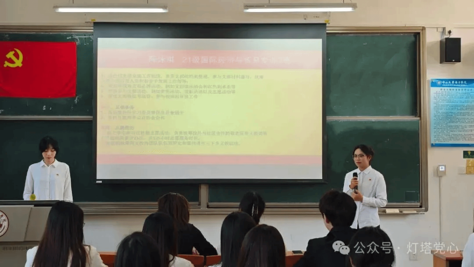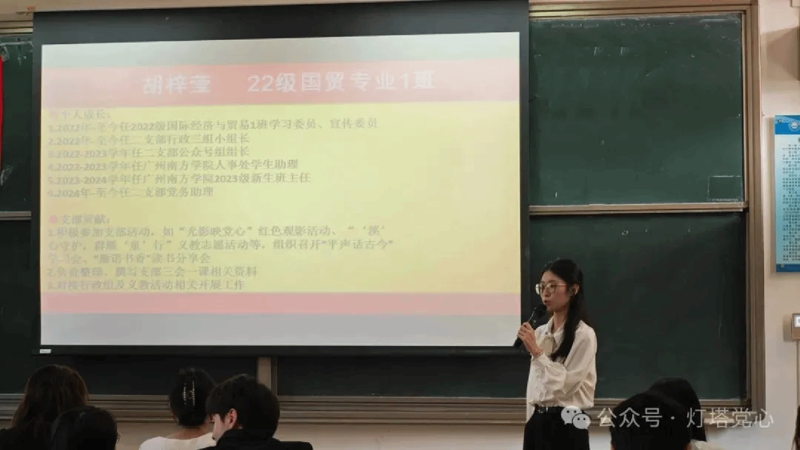 红色基因薪火传,党员风采再飞扬。胡梓莹等7名发展对象依次上台做自我汇报,从入党动机、个人经历、学业表现、荣誉奖项以及党支部贡献等维度向党组织表达了自身对党的热爱以及向党组织靠拢的决心。会议上,党支部书记和参会党员对他们的发言进行提问与点评,希望每位发展对象能坚定理想信念,切实做到在思想上和行动上与党组织保持一致。