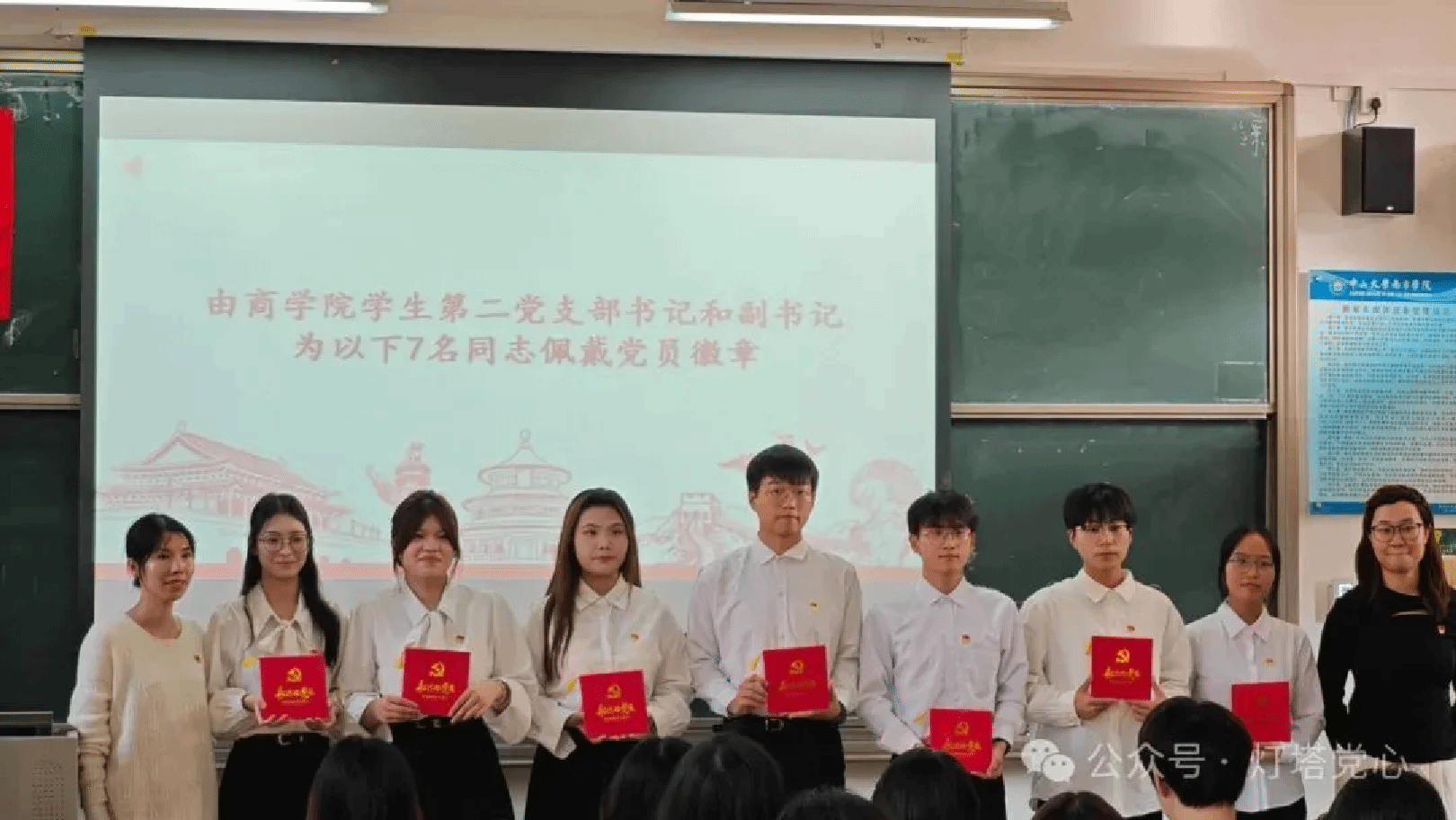 紧接着,各入党介绍人发表考察意见及党支部委员会报告了对发展对象的审查情况,经与会正式党员无记名投票表决,最后同意接收胡梓莹等7名同志为中共预备党员。艾弗森贝博ballbet官网学生第二党支部书记张燕老师宣读了预备党员预备期及入党介绍人职责表决后,与裴丹丹老师为7名预备党员同志佩戴党员徽章,颁发政治生日卡。