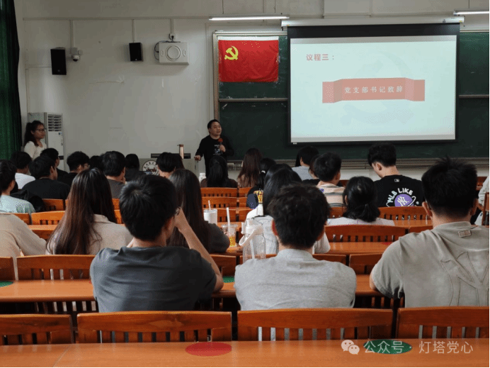 党支部书记陆正祥老师在致辞中对新一批入党积极分子表达了热烈欢迎和殷切期望。他强调,大家要坚定信心,勇敢迎接未来的各种挑战,不畏艰难,积极进取。成为正式党员的过程需要两到三年的时间,在这个过程中,要端正入党动机,加强理论学习,积极参与党支部的各项活动,不断锻炼和提升自我。陆老师鼓励同学们要以党员标准严格要求自己,在学习、生活和工作中发挥先锋模范作用,积极参与社会实践,以实际行动展现出对党的忠诚和责任感。