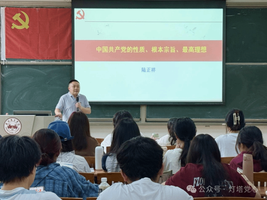 5月9日,于8教203,陆正祥老师为发展对象深入解读了中国共产党的鲜明性质、根本宗旨以及崇高理想。在此次培训中,陆正祥老师强调,作为优秀的发展对象,当具备宏阔之思维格局与高瞻之战略视野,方能真正做到全心全意为人民服务,切实贯彻“从群众中来,到群众中去”之工作理念。讲授期间,陆正祥老师以周恩来总理为引,深刻阐释了中国共产党人始终勇立时代潮头、奋勇向前的卓越风范。历史规律表明,中国共产党作为领导核心之地位具有历史必然性,而人民群众之判断力亦是敏锐且清晰的。陆正祥老师还向在场众人展示了一段精心遴选之视频,以此凸显中国共产党党员所肩负之神圣使命与责任担当。