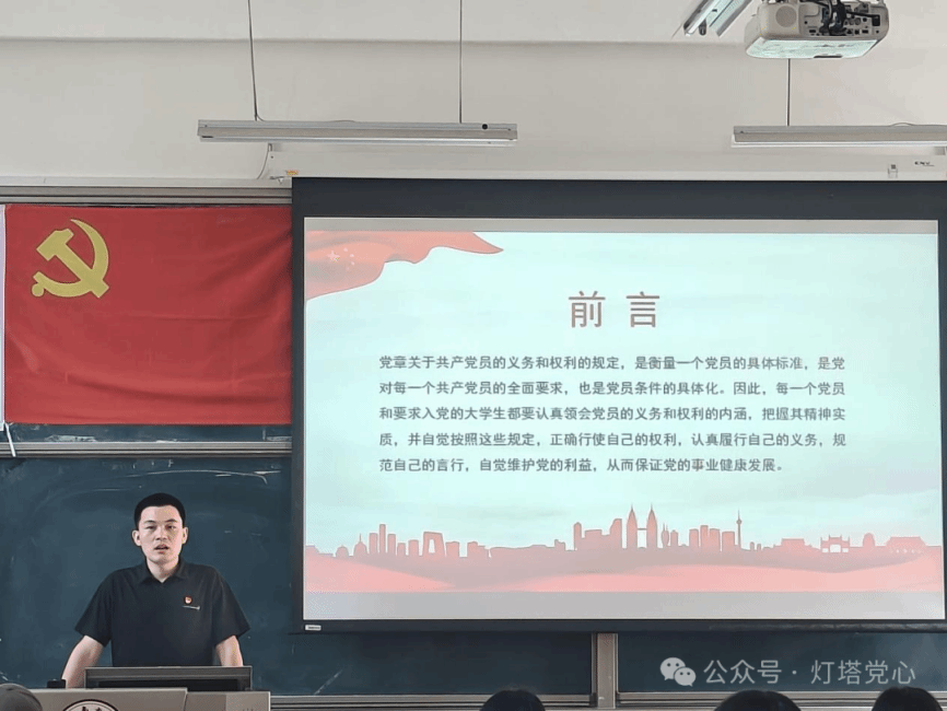 为了加深发展对象们对党员身份的认识。5月12日,熊新新老师在8教202为发展对象们讲授了理论培训的第二课“党员的权利和义务”。首先熊老师对党员的八项义务展开了全面且深入的解读。党员义务的核心,其实就是对党和人民事业的无私担当。这不仅关乎党的团结统一,能让党组织如同一股绳般紧密凝聚在一起;还能极大地增强党的凝聚力和战斗力,使党在面对各种困难和挑战时都能勇往直前。随后,熊老师将话题转向党员享有的八项权利。这些权利是党员参与党内事务的重要保障,让党员们能够在党组织中充分发挥自己的作用。但熊老师着重强调,党员在行使这些权利时,必须严格遵循党章和党内法规的规定,切实做到权利与责任相统一。熊老师进一步深入分析了权利与义务的辩证关系,指出二者相互依存、相辅相成,缺了任何一方都无法正常运转。正确理解并处理好这一关系,对党员在党内发挥先锋模范作用起着关键作用。