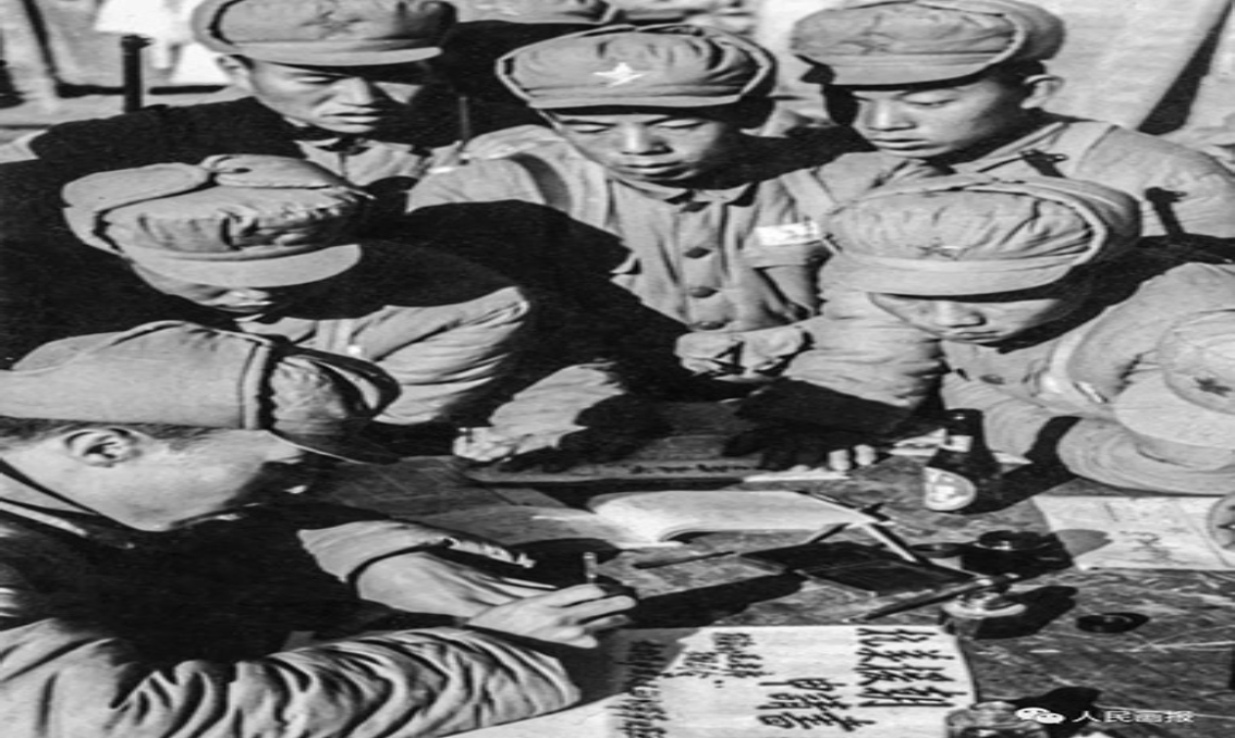 中国人民解放军的战士们纷纷写下申请书,保卫国土