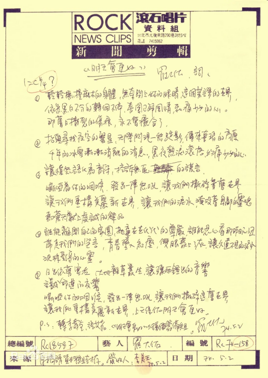 《明天会更好》由罗大佑、张大春等作词,陈志远编曲,中国台湾群星演唱。该曲通过平和而热切的音调,表达出人们祈求世界和平、期待明天会更好的美好愿望。该曲在谱曲上用了很多切分音,让该曲音调有动感、旋律更饱满,同时也将人们多年来渴望世界和平的心声很自然地融入旋律之中。该曲的第一段音乐平和沉稳,轻轻述说人们对世界和平的渴望和祈求;第二段旋律高亢、气势恢弘,并多次重复,逐步深化主题,让听者感受到人们对美好明天的热切向往。
