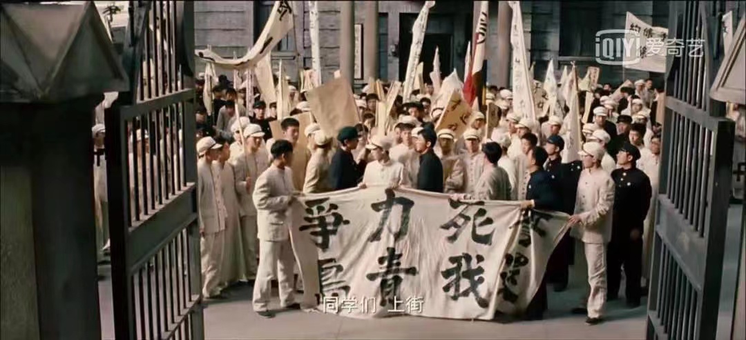 1919年,巴黎和会上中国外交失败,就像一条导火索一样迅速点燃了民众长期被挤压的民族愤怒和爱国情怀。中国未能挽回在山东的权益,民族情绪空前高涨。青年学生上街游行,讨伐卖国贼,后来工人罢工,从此,工人阶级登上历史舞台。这部分,电影重笔描绘了民众为反抗政府当时政策的激进场面,将爱国情怀传递地得淋漓尽致。