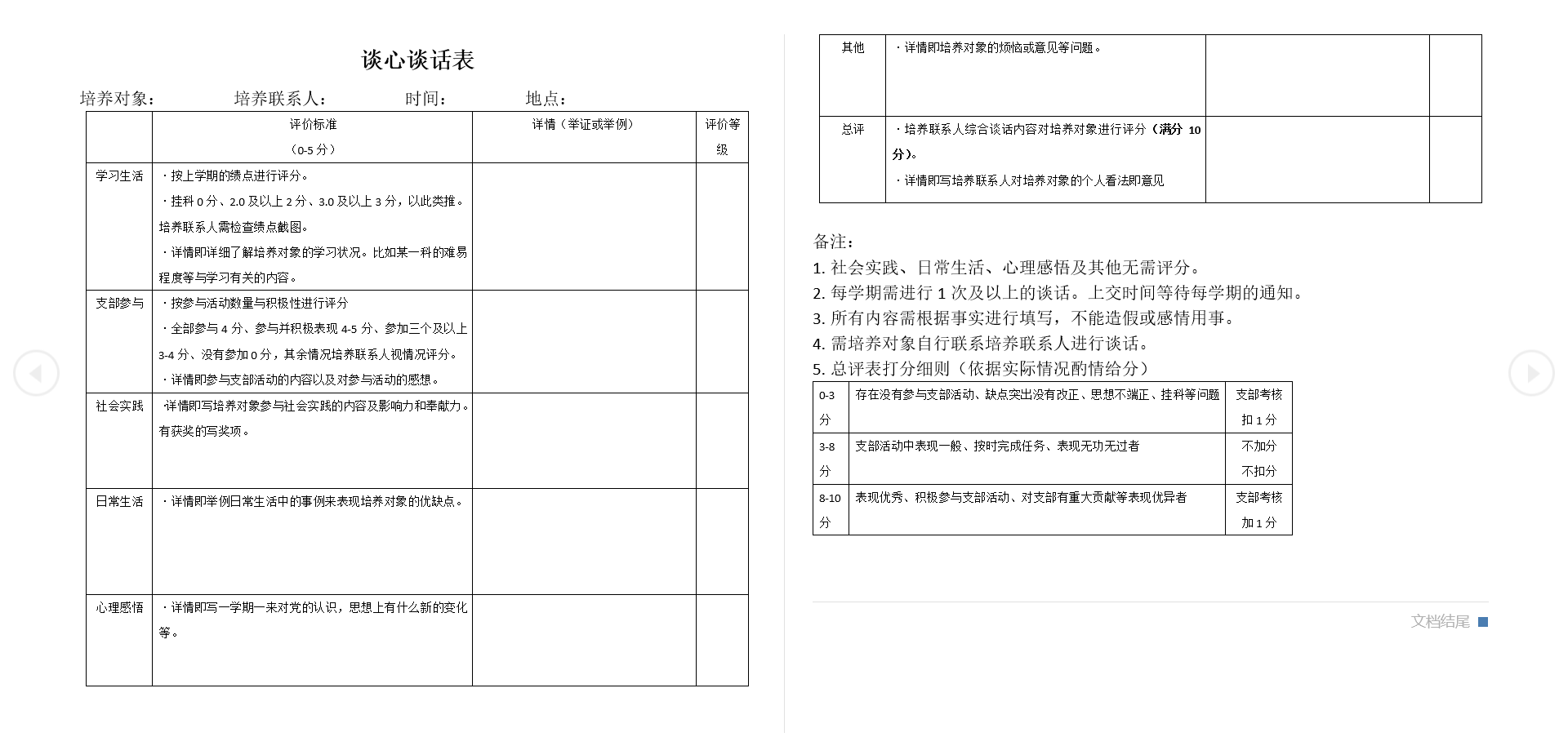 党员谈心谈话记录表