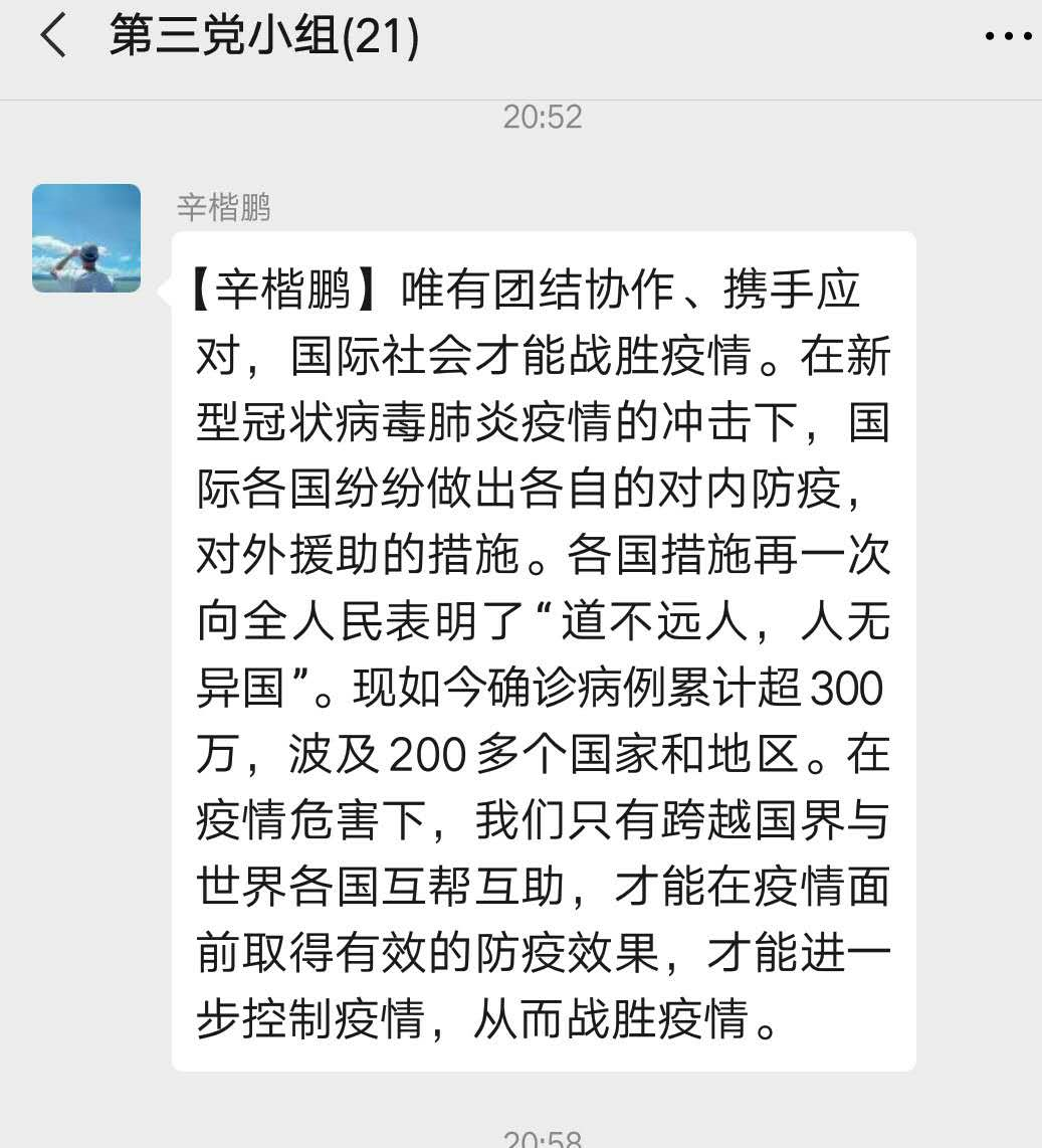 今日经典语录:病毒没有国界,疫情不分种族,人类是休戚与共的命运共同体,唯有团结协作、携手应对,国际社会才能战胜疫情。
