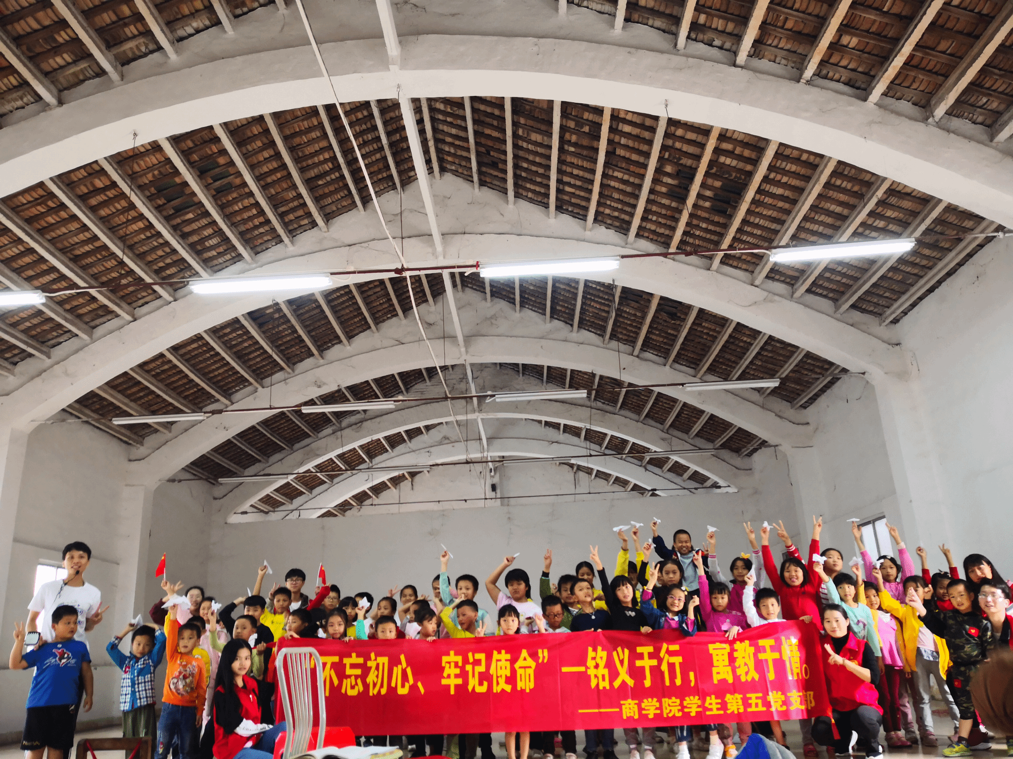 活动结束,志愿者们整理好物资和清理教室后,在同学们的不舍下离开了。此次“爱国课堂”义教活动不仅提高了同学们的社会责任感,还弘扬了爱国主义精神,让爱国精神在孩子们心中牢牢扎根,让爱国主义精神代代相传、发扬光大。希望孩子们能从历史的长河中寻找源头,从社会的进步中汲取力量,从一代又一代人的奋斗中获得启示。同时,中国共产主义青年团是中国共产党领导的先进青年的群众组织,是广大青年在实践中学习共产主义的学校,是中国共产党的助手和后备军,“党建带团建”活动不仅能帮助共青团切实加强基层组织建设,也有利于凝聚青年智慧,扩大党的青年群众基础,构建社会主义和谐社会。