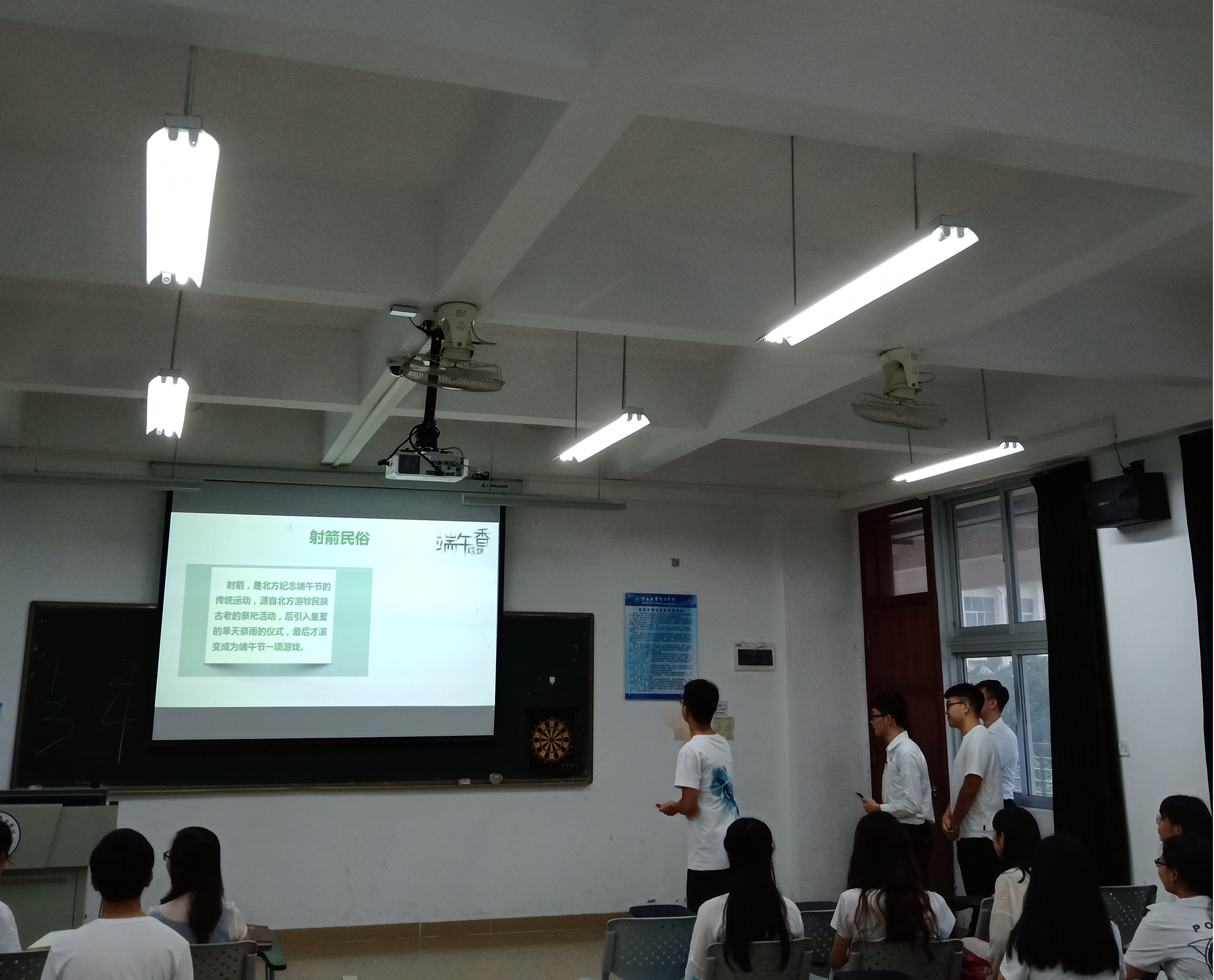 本次活动共分为五个环节,分别是观看视频、小组展示、飞镖比赛、知识竞赛、DIY香囊和书记讲话。