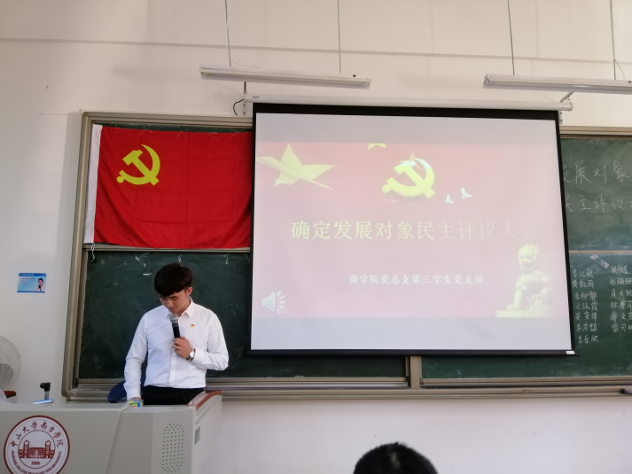 2019年9月25日下午14:30,艾弗森贝博ballbet官网学生第三党支部19秋季确立发展对象民主评议大会于8教204召开。出席本次会议的有支部副书记陆正祥同志、林苏榕同志、各党员同志们及发展对象候选人们。本次会议由奉忠逸同志主持。