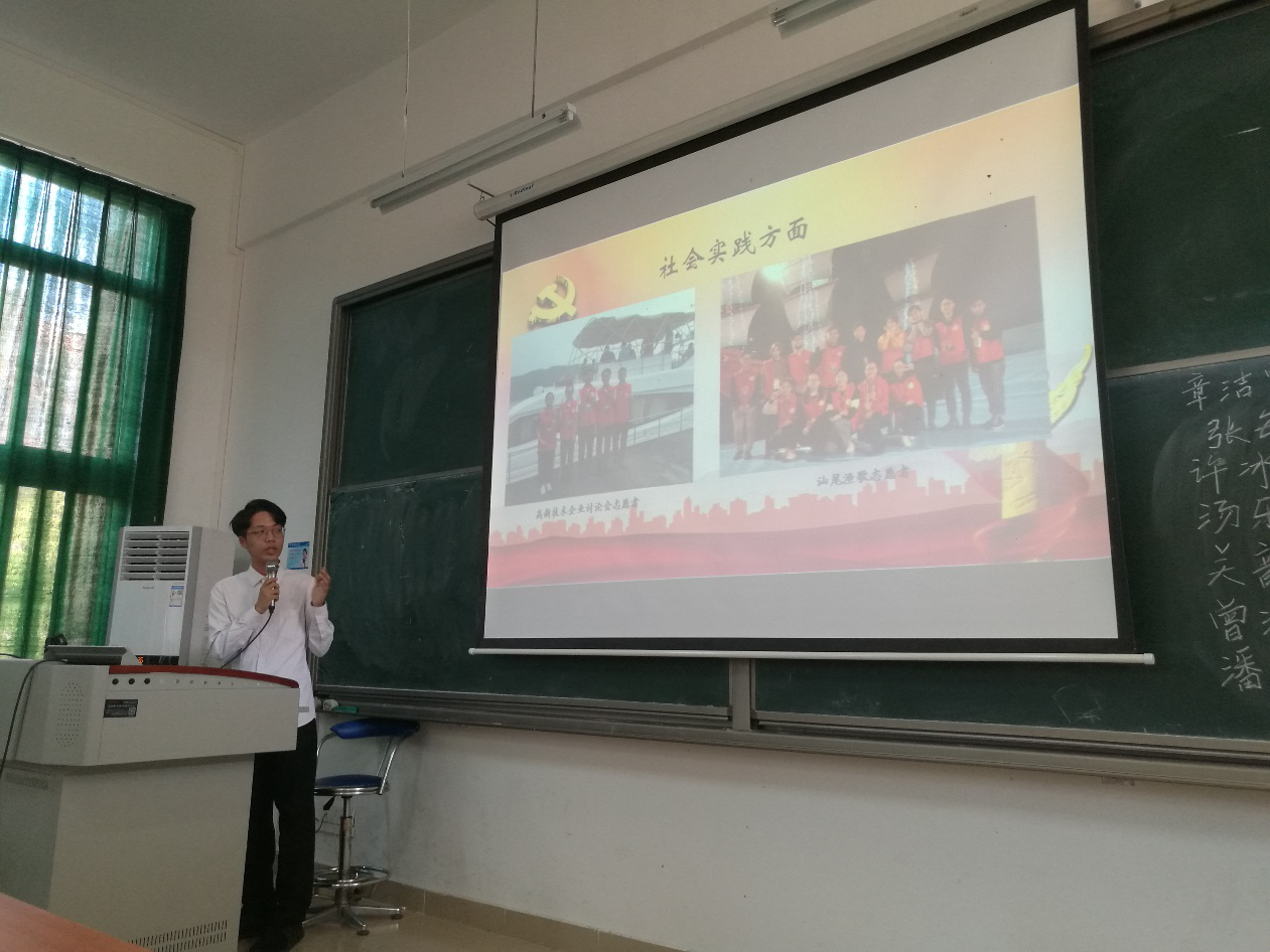 会议第一项议程,入党积极分子进行自我介绍,在播放国际歌之后,入党积极分子们逐个上台,从思想变化、学习生活、社会实践及与党支部的联系这几个方面介绍自己的大学生活。通过这项会议内容,让各位入党积极分子们在回顾大学生活的过程中,检视自己,发掘自身的特长与优点,同时认识到了自己的不足,取其所长,避其所短,朝着各自的共同目标而努力奋斗。