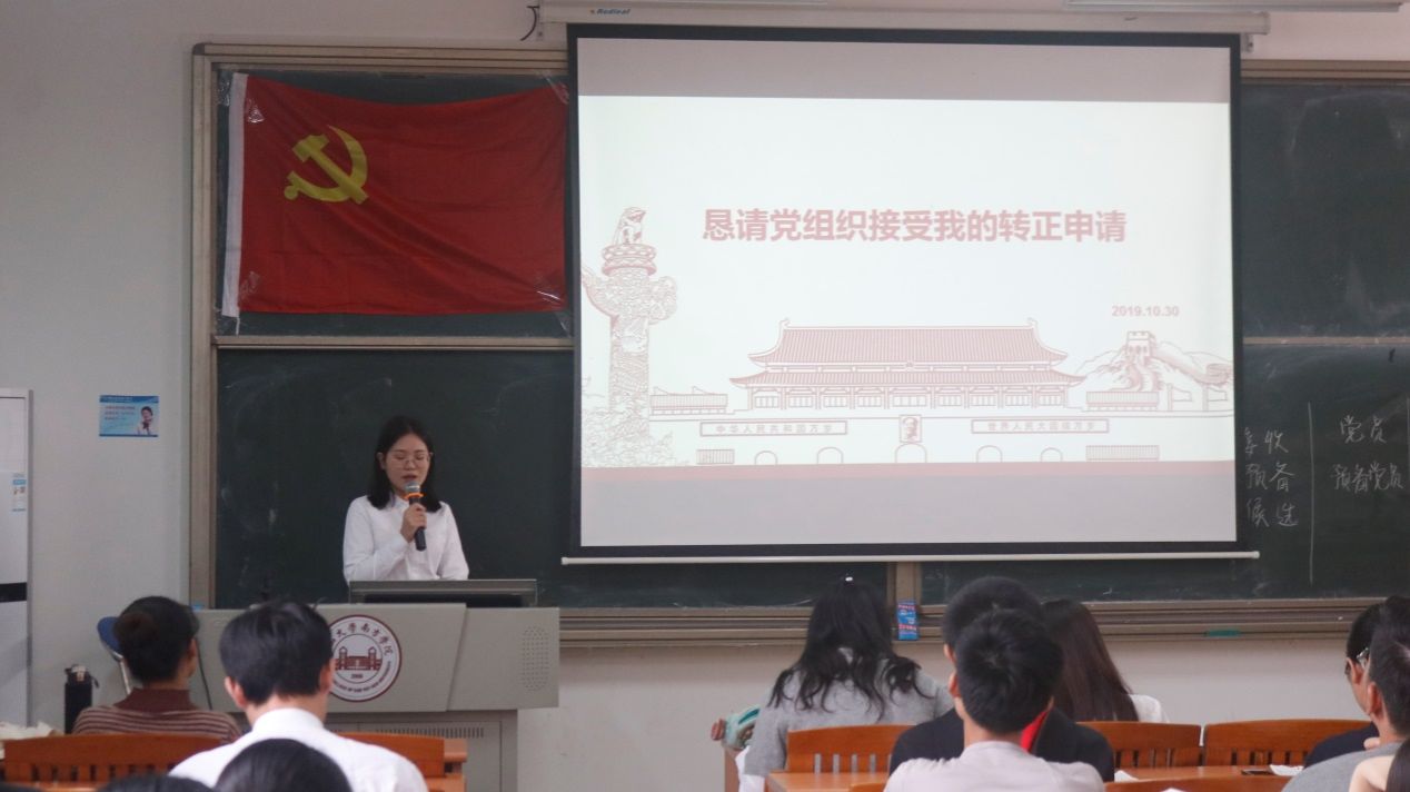 2019年秋季预备党员至今预备期已满一年将通过大会讨论转正事宜。各位预备党员依次进行自我汇报,郑重地向党组织提出转正申请,从思想认识、理论学习、工作生活等多方面总结汇报了预备期间的表现以及这一年以来的成长进步,并指出自身的不足之处,同时也表达出自己加入中国共产党员的诚恳愿望。