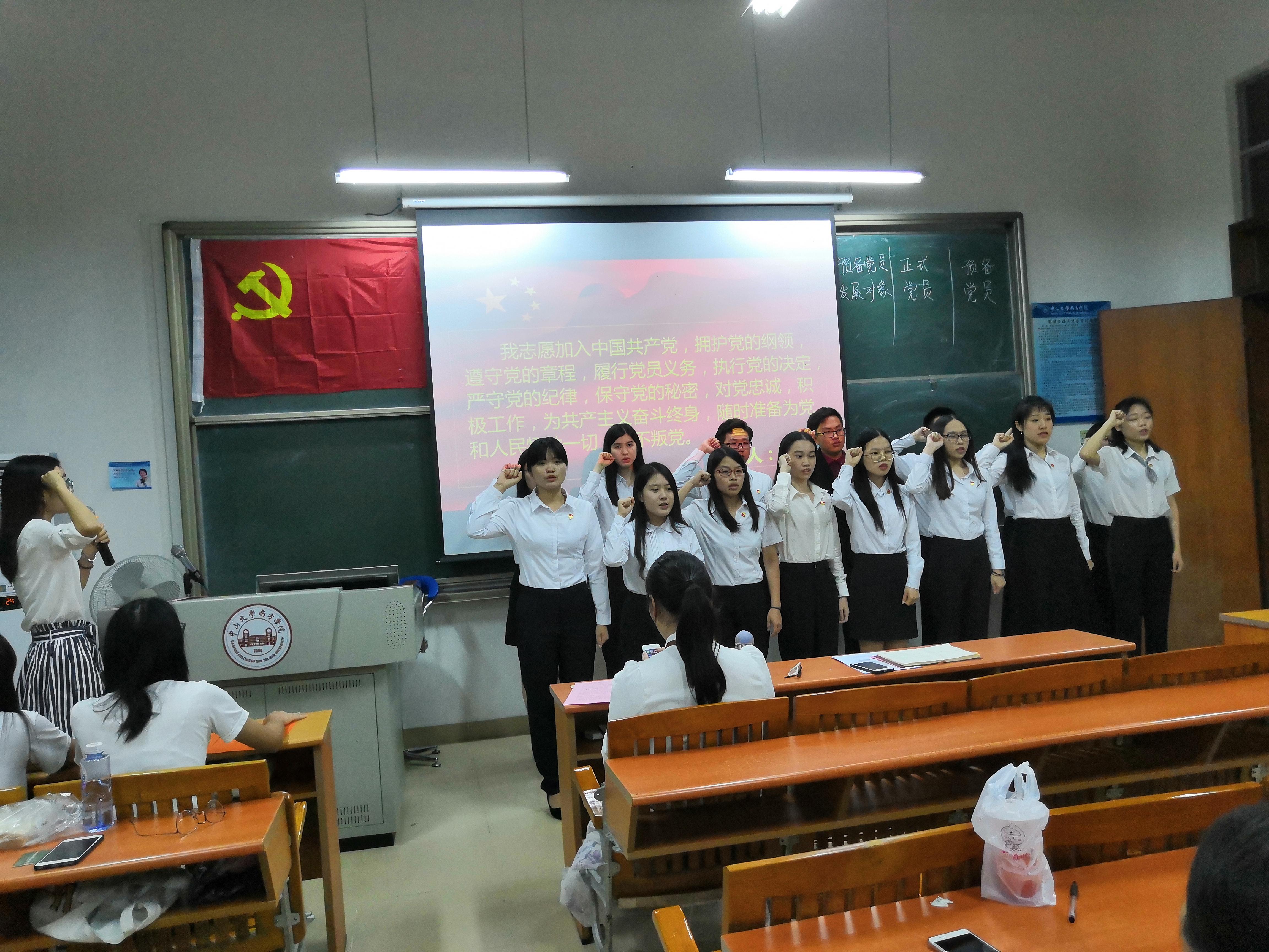 随后由刘梦梦老师带领党员、预备党员进行入党宣誓,并向预备党员颁发党徽。