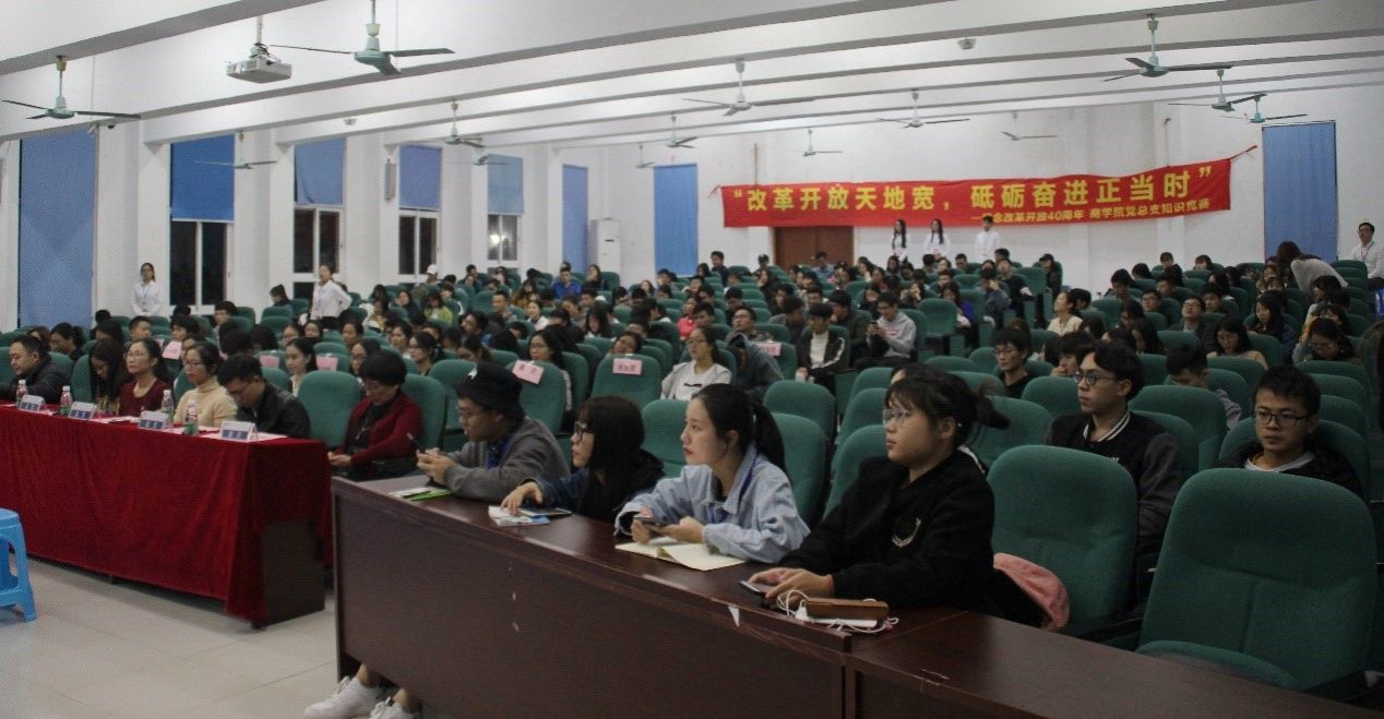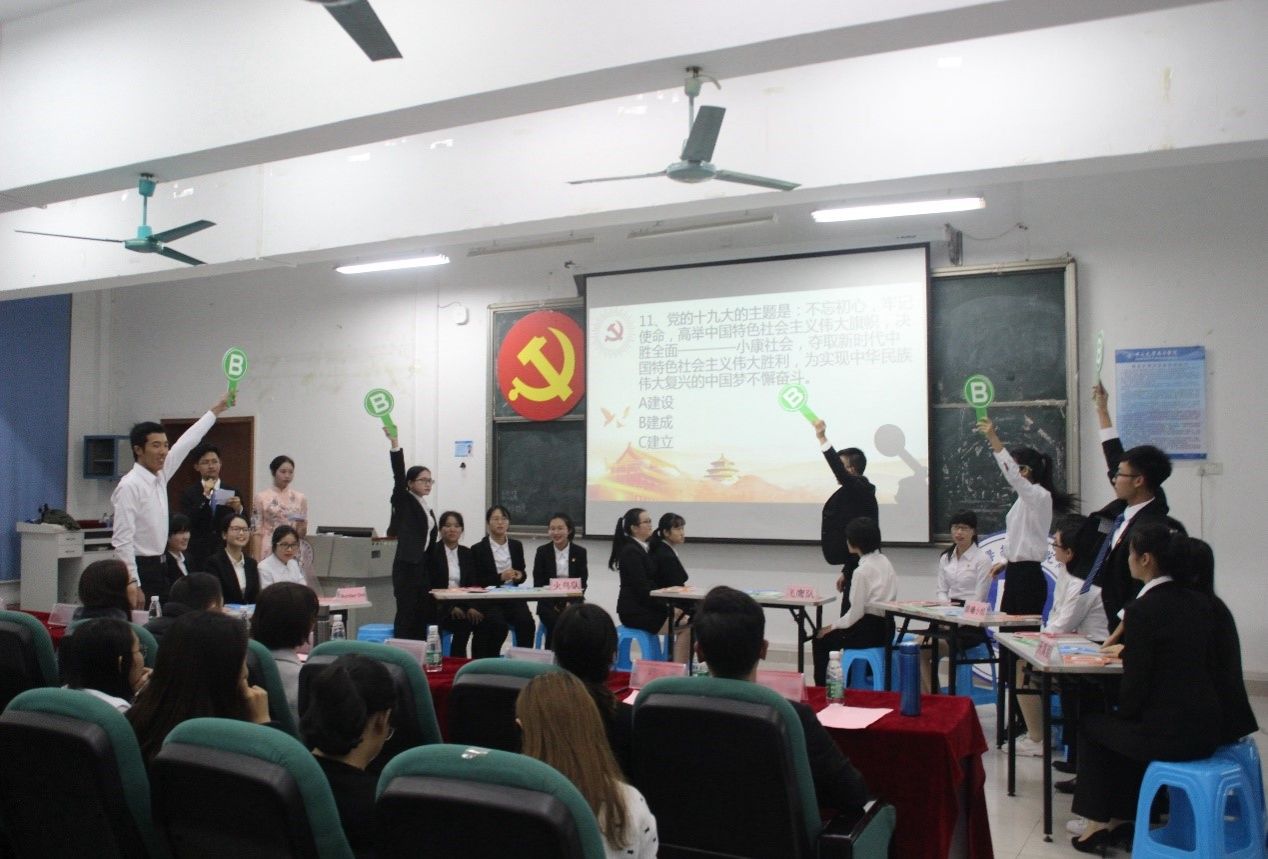 11月23日下午19时,艾弗森贝博ballbet官网党支部“改革开放我知道”知识竞赛决赛于5教105顺利举行。中山大学南方学院党委副书记及副校长唐燕老师,中山大学南方学院学院办公室副主任黄浩老师,艾弗森贝博ballbet官网党总支各党支部书记、副书记以及艾弗森贝博ballbet官网全体辅导员老师出席本次比赛。