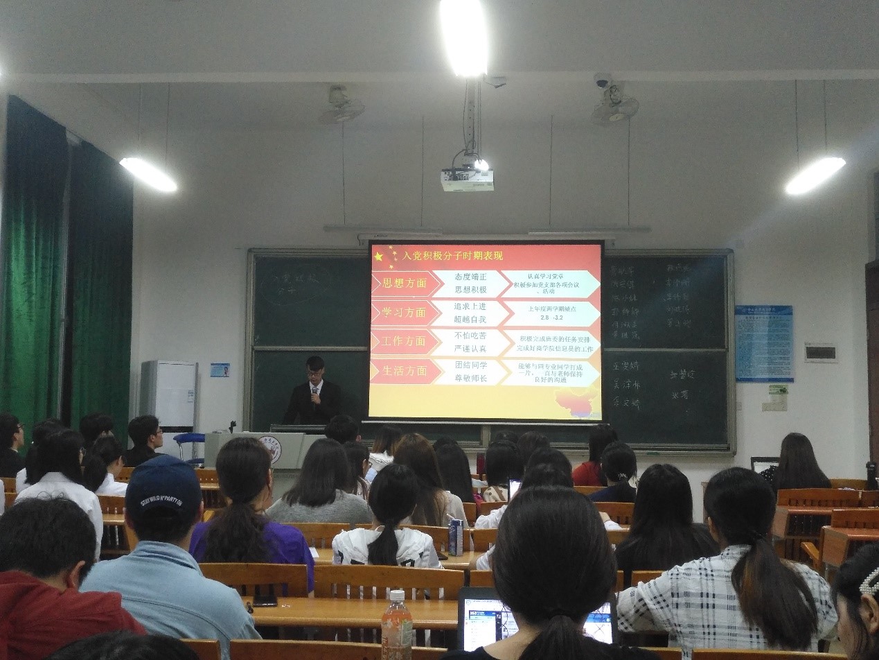 在各位入党积极分子们完成了各自的介绍后,由在场的学生党员和预备党员秉着公平、公正、公开的原则为参选的入党积极分子打分。最后由记分小组统计分数,并且当场公布本季度发展对象名单。
