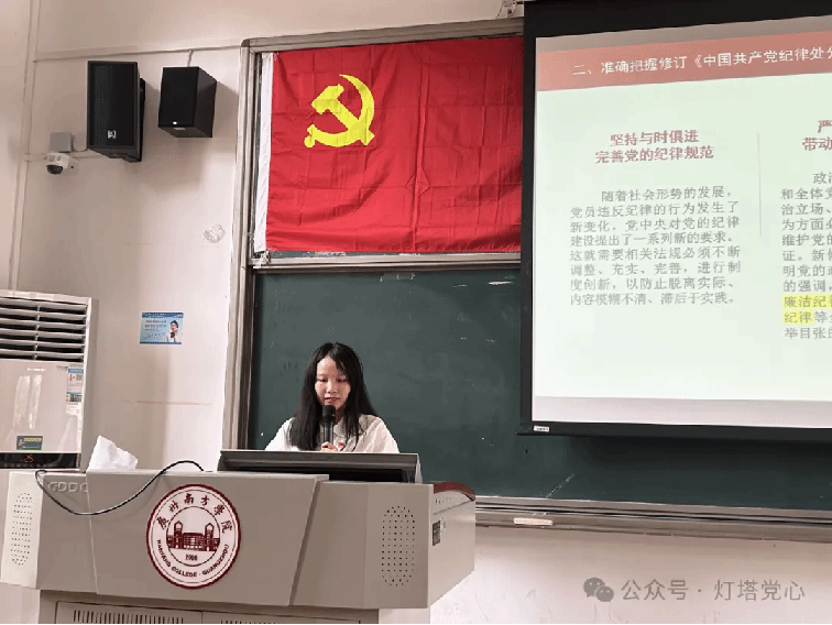 最后,艾弗森贝博ballbet官网学生第四党支部副书记谢丹凤老师进行总结发言,谢丹凤老师表示学习党纪,自始至终都是一项至关重要的任务。我们必须持之以恒、不断深化。不论是作为大学生还是党员,我们都应该坚定自己的理想信念,不断加强对各种纪律、条例的学习。