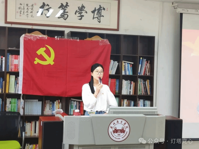 会议伊始,党支部书记邓莉老师宣读大会流程及注意事项,接着,全体起立奏唱《义勇军进行曲》。