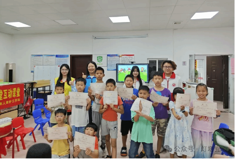 经过一番激烈的角逐,活动迎来了颁奖环节。主持人根据比赛的比分以及孩子们在游戏环节的表现,颁发了一等奖和二等奖。同时社工也为所有的小朋友和志愿者颁发了小礼品,获得奖项和小礼品的孩子们手捧奖状,脸上洋溢着幸福的笑容,小朋友们为他们的成就感到骄傲和自豪。这些奖项不仅是对孩子们努力的肯定,也是对他们未来成长的期许。