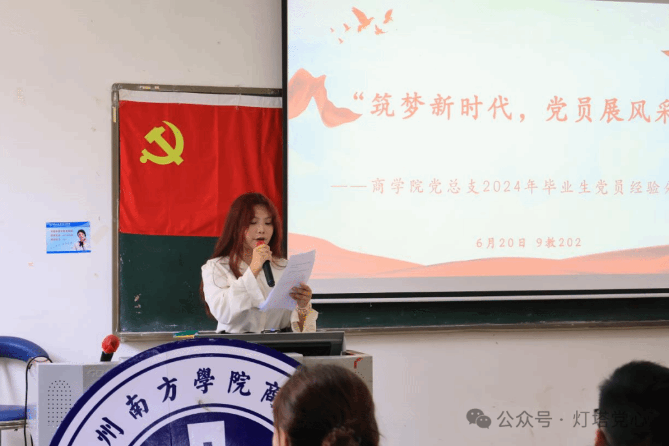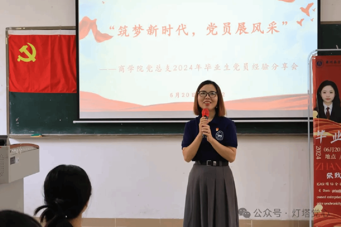 会议伊始,由韩露老师进行开场致辞。韩露老师希望大家聆听优秀毕业生党员为们的经验分享,以优秀毕业生党员为榜样,逐步明晰自己未来的生活和职业的发展。最后感谢2024届毕业生党员在校期间为学校和学院做出的突出贡献,并为毕业生党员送上美好的祝福。
