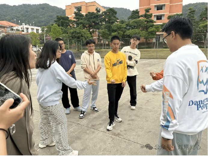 主持人站在圆圈中央,随机喊出“桃花朵朵开”,参与者齐声回应“开几朵”。主持人喊出一个数字,参与者要迅速以最快的速度几个人抱成一团,组成五个人的小团体。本轮趣味游戏的有序开展,宛如一条无形的纽带,巧妙地拉近了成员们彼此之间的距离。在游戏过程中,各小组成员置身于轻松愉快的氛围里,尽情享受着互动的乐趣,也深切地感受到了团队合作所蕴含的重要意义。
