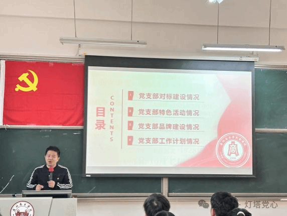 会议第二项议程,党支部书记总结一年来党支部工作情况。胡敬成老师从党支部对标建设、特色活动、品牌建设以及工作计划等情况进行总结。同时,老师也坦诚地指出了工作中存在的不足与面临的挑战,如在党员教育活动形式上还需进一步创新。最后,老师希望大家对党支部建设提出具体实施方案,落实党支部品牌建设,每一位党员不能只讲方案不落实,要体现在实际行动上,才能把党支部建设得越来越好。