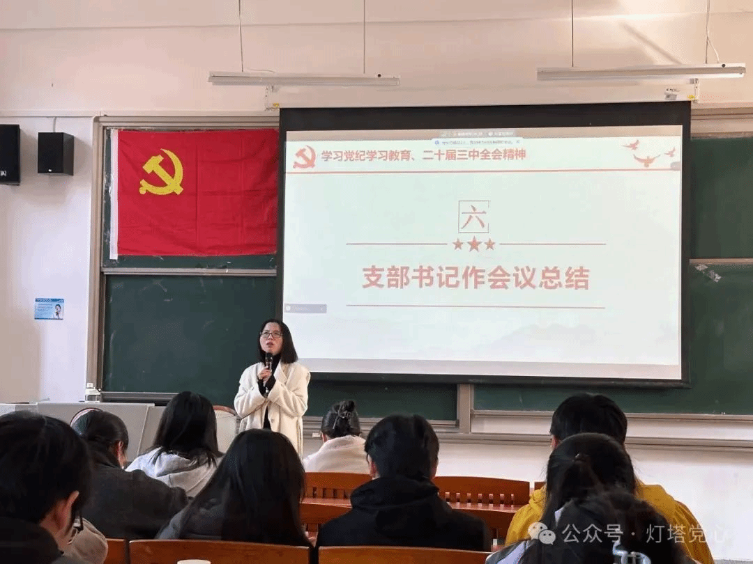 主持人首先介绍了本次会议的主题——学习党纪学习教育,二十届三中全会精神。本次大会共分为六个流程,分别为党纪学习教育、二十届三中全会精神,党支部开展工作情况通报,党员批评与自我批评,民主评议党员,民主评议支委会,党支部书记作总结。
