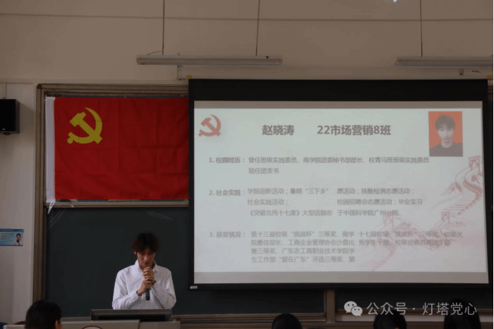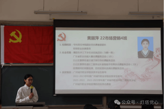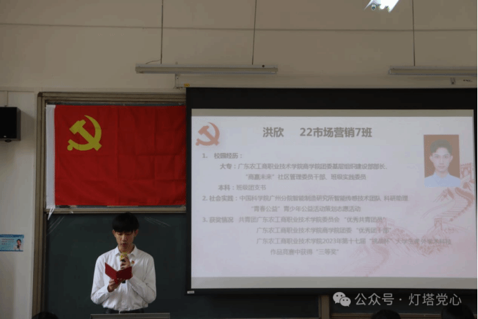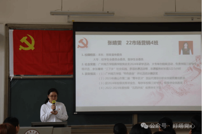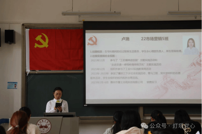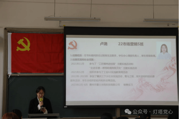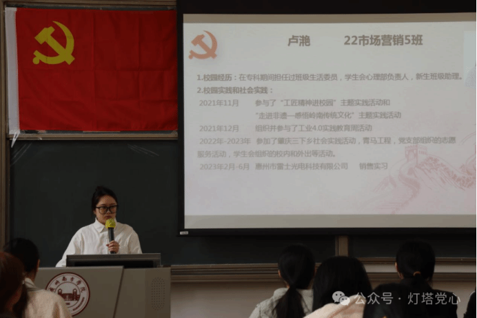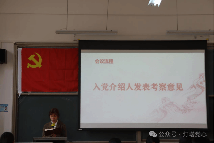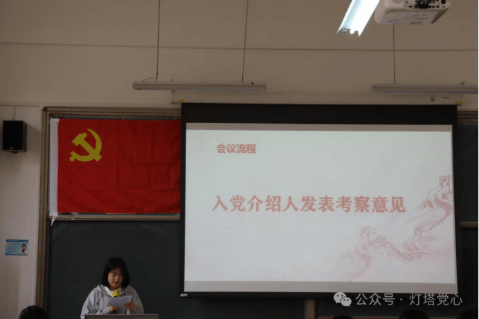 进入预备党员个人汇报环节,6位预备党员依次上台汇报自己预备期的表现,反思自己的不足。
