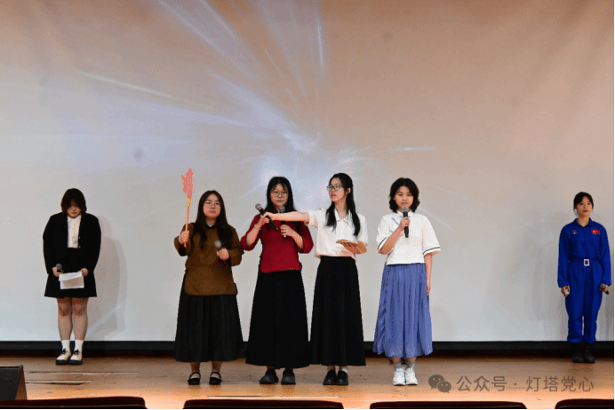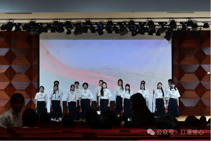 身着正装的同学们,用饱含深情的朗诵,带领观众领略祖国的大好河山,传递对祖国的赤忱热爱。“你听,祖国正在向我们召唤!”一句包含热忱的呐喊响彻全场。同学们用充满豪情的诵读,向观众们展现了中华五千年文明的璀璨,诉说了神州万里山河的壮美。那些藏在文字里的故事与豪情,在抑扬顿挫的语调中徐徐展开,变得鲜活又震撼,点燃了每个人心中炽热的爱国情怀。
