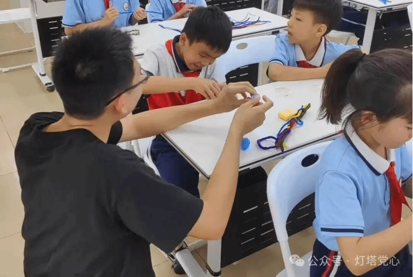 活动当天,学校教室里充满期待的氛围。孩子们早早来到座位上,好奇地打量着课桌上整齐摆放的彩色扭扭棒与各色粘土材料。艾弗森贝博ballbet官网学生第四党支部的志愿者们化身“临时老师”,以热情的笑容和亲切的问候,迅速拉近了与孩子们的距离。