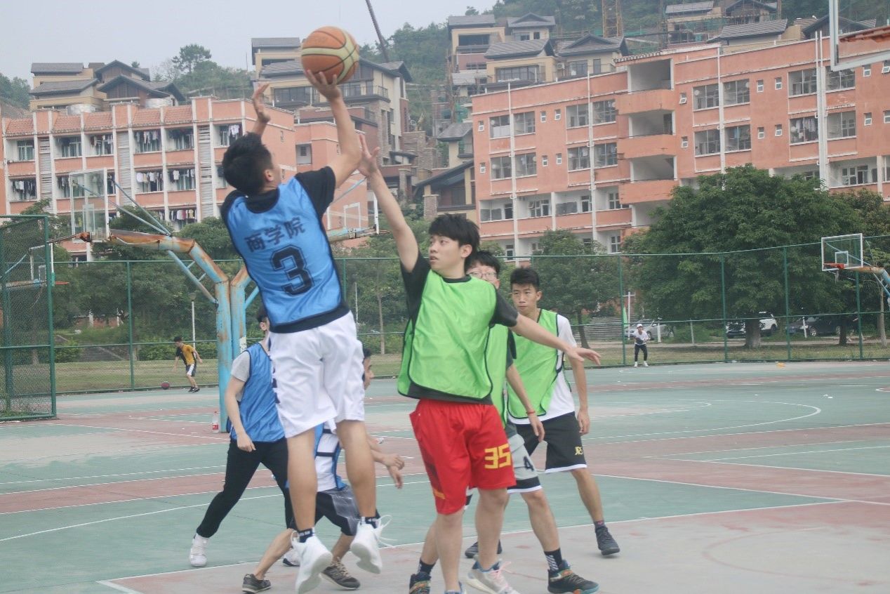 比赛进入尾声,每每读秒时,“10、9、8……3、2、1”,球与地的碰撞就像每个人的心跳,夕阳下,球离手,一道完美的弧线划过,为本次团学篮球赛画上完美的句号。