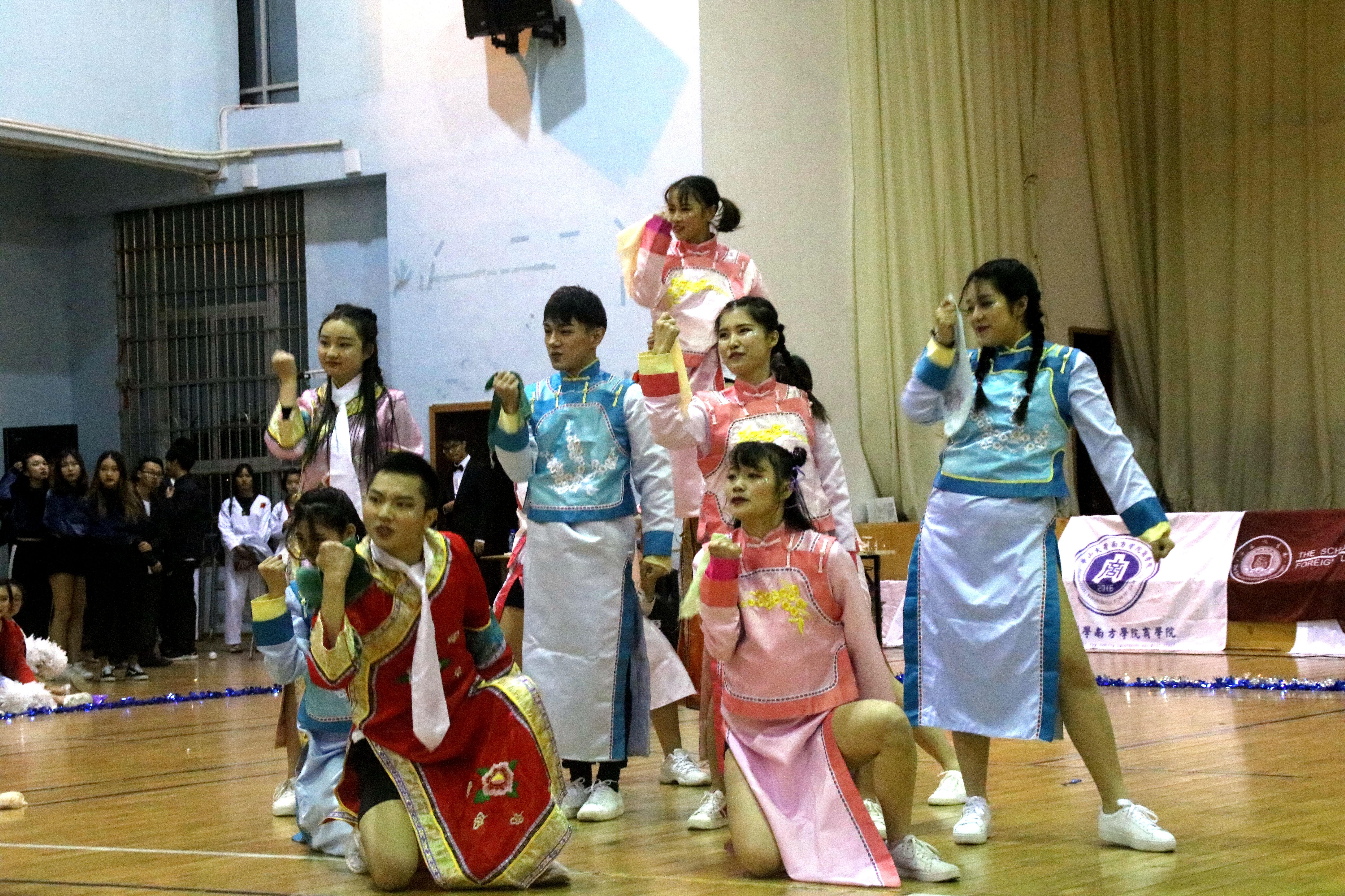 在比赛中途,音响设备出现了一点小问题,但并没有由此浇灭了表演者与观众的热情,九大院系各支队伍的参赛人员身着动感服装闪亮登场,伴着动感音乐响起,精美的开场造型震惊全场,观众们都不禁为此欢呼呐喊。