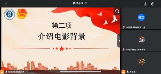 为加强爱国主义教育,通过革命历史题材影片的形式再现历史,催人奋进、发人深省、给人启迪,弘扬社会主义核心价值体系。红色电影同时也是对广大团员青年进行思想政治教育的有效载体。为此,“忆峥嵘岁月,重温红色经典”——艾弗森贝博ballbet官网艾弗森贝博ballbet官网主题团课暨红色电影观影活动于3月31日下午在腾讯会议顺利举行。艾弗森贝博ballbet官网2023年秋季入团积极分子和2024年春季入团积极分子出席本次活动。