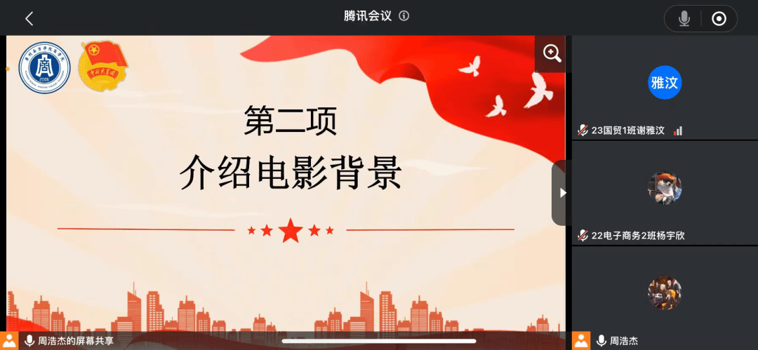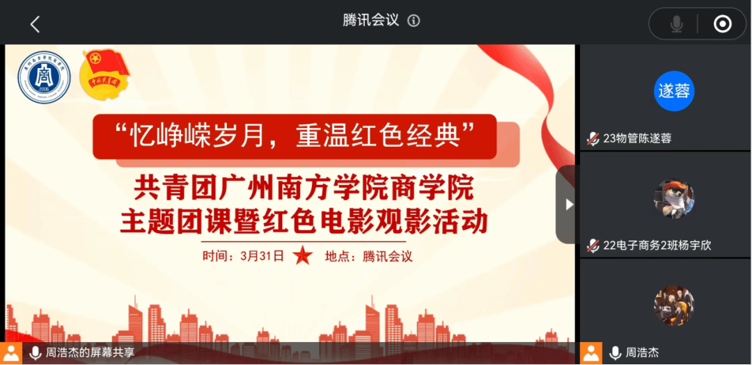为加强爱国主义教育,通过革命历史题材影片的形式再现历史,催人奋进、发人深省、给人启迪,弘扬社会主义核心价值体系。红色电影同时也是对广大团员青年进行思想政治教育的有效载体。为此,“忆峥嵘岁月,重温红色经典”——艾弗森贝博ballbet官网艾弗森贝博ballbet官网主题团课暨红色电影观影活动于2024年3月31日下午在腾讯会议顺利举行。艾弗森贝博ballbet官网2023年秋季入团积极分子和2024年春季入团积极分子出席本次活动。