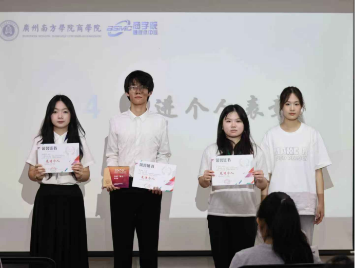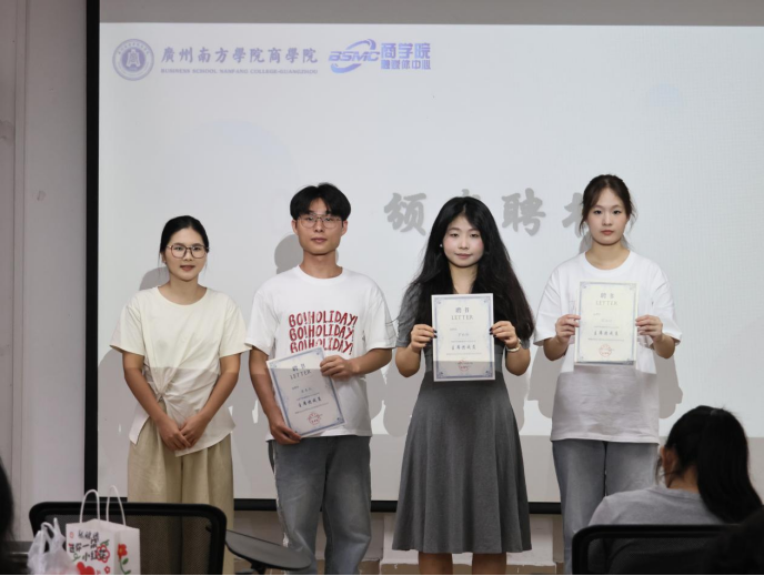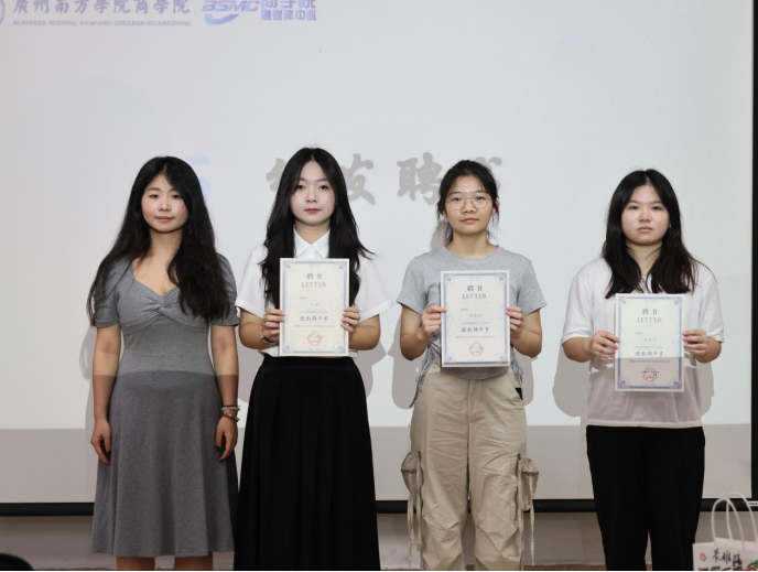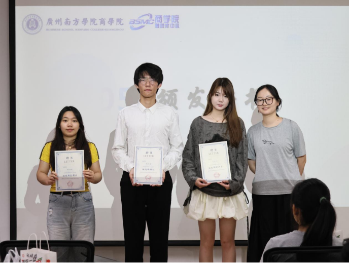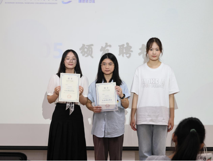 江语琪、彭梦梦、古梓茹同学获得金笔杆奖。书写商院故事的她们,让每篇稿件都成为 “有力量的声音”。