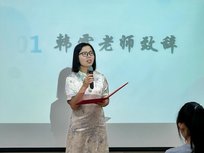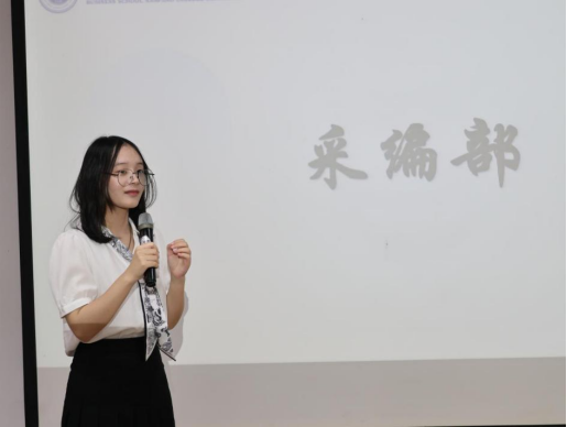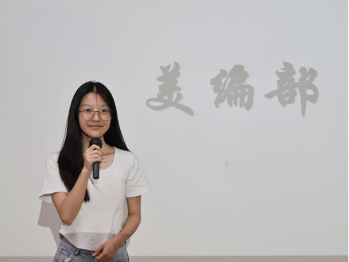 会议第二项,韩露老师致辞。她以最真挚的话语,诉说了对融媒体工作的观察与期许。提及成员们赶稿、改稿、以及摄影、幕后等工作的艰辛,言语中充满表扬;看到大家挤时间、不推脱任务的担当,又倍感欣慰,寄语里饱含对团队继续发光发热的厚望,为我们指明了前行的方向。