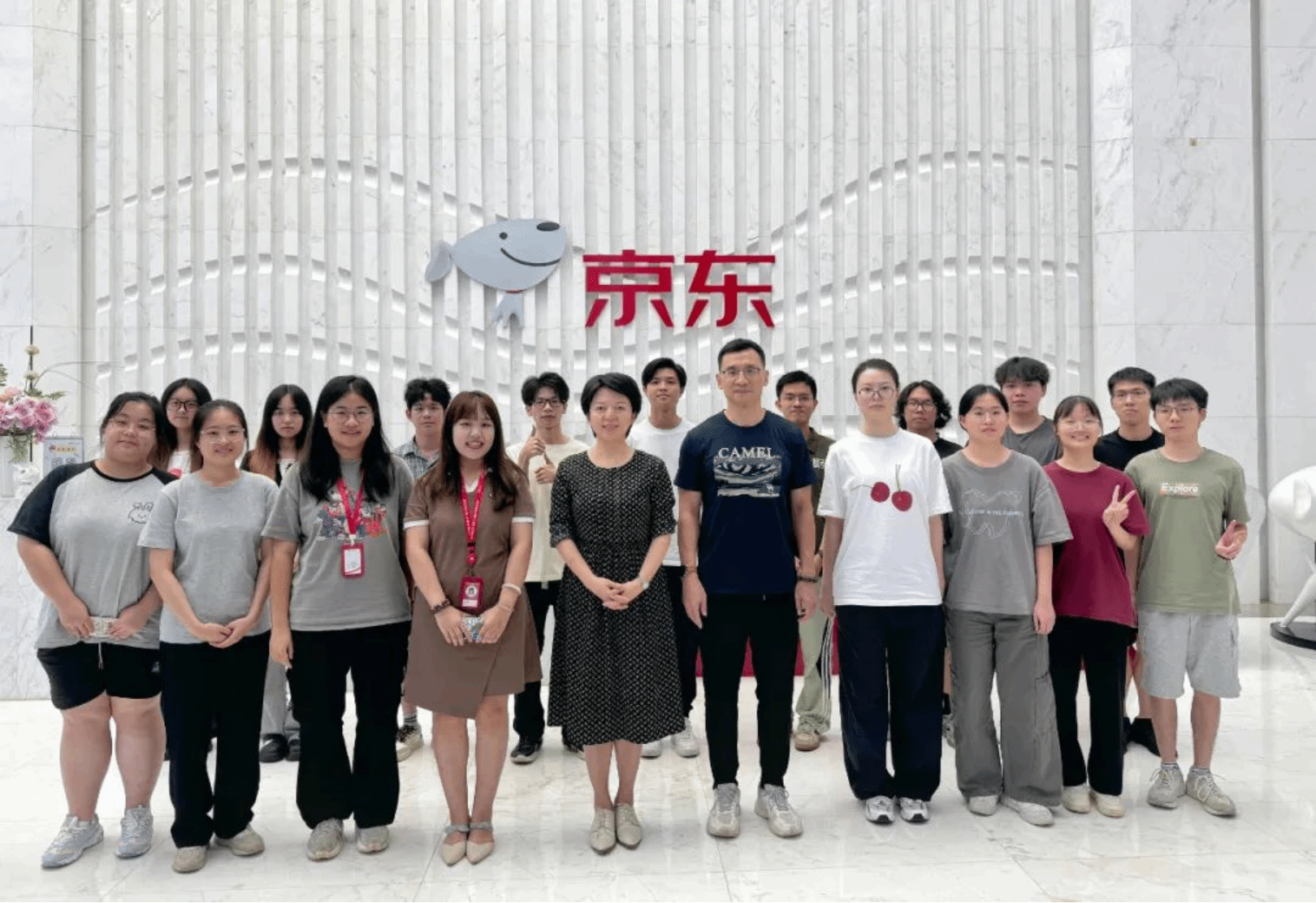 会议结束后,全体与会人员在京东一楼大厅合影留念,留下了这次难忘交流的瞬间。此次探访不仅加深了"京苗班"项目的合作基础,也为双方未来将校企合作推向深入发展奠定了坚实的基础,对于提升学院的实践教学水平具有重要意义。
