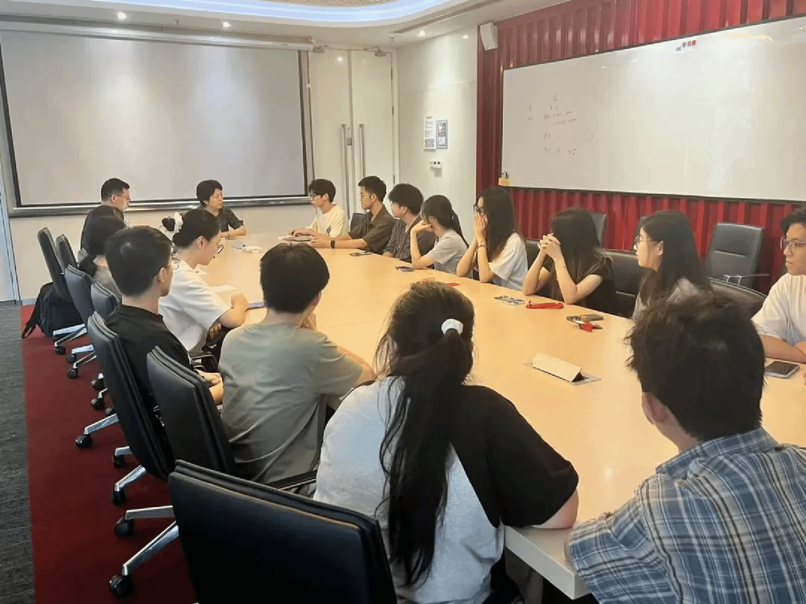 在京东京苗班项目负责人赵沅君的组织下,全体与会人员在会议室进行了深入交流。贾佳书记首先对学员们在京东的实训经历表示了深切的关心与亲切的慰问,详细询问了实习情况及收获,并鼓励他们珍惜这次难得的学习机会,认真投入实习工作。