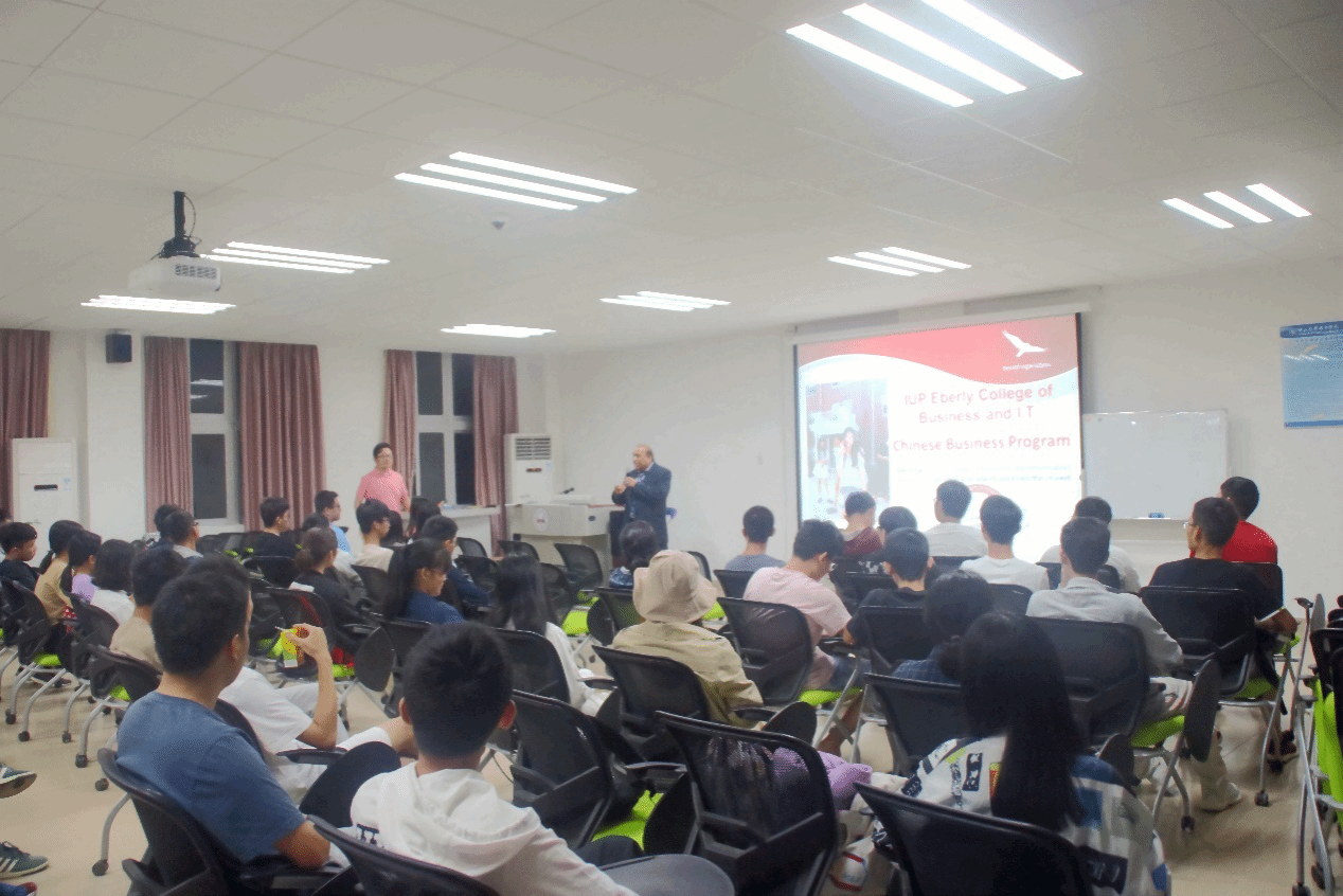 17时45分,宾州印第安纳大学宣讲会在九教101顺利进行。Raj Garg先生向同学们介绍了学校概况,并详细讲述了留学申请要求、课程设置以及奖学金制度。同时,Raj Garg 先生指出,科任教授会将生活经验带入课堂,学生将通过礼仪晚宴、职业发展活动、简历研讨会和模拟面试等方式,参与新的课堂体验,从中了解该如何在竞争激烈的商业环境中表现自我。