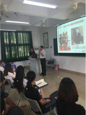2016年10月15日艾弗森贝博ballbet官网借校庆之机邀请美国阿兰特国际大学驻中国办事处绳老师和瑞士酒店管理教育集团广州办事处彭老师及2014级市场营销专业校友邱舜如分别为艾弗森贝博ballbet官网学生举办了《美国高等教育体系概括》和《酒店管理职业发展规划》专题讲座,艾弗森贝博ballbet官网院长陈功玉参加讲座。