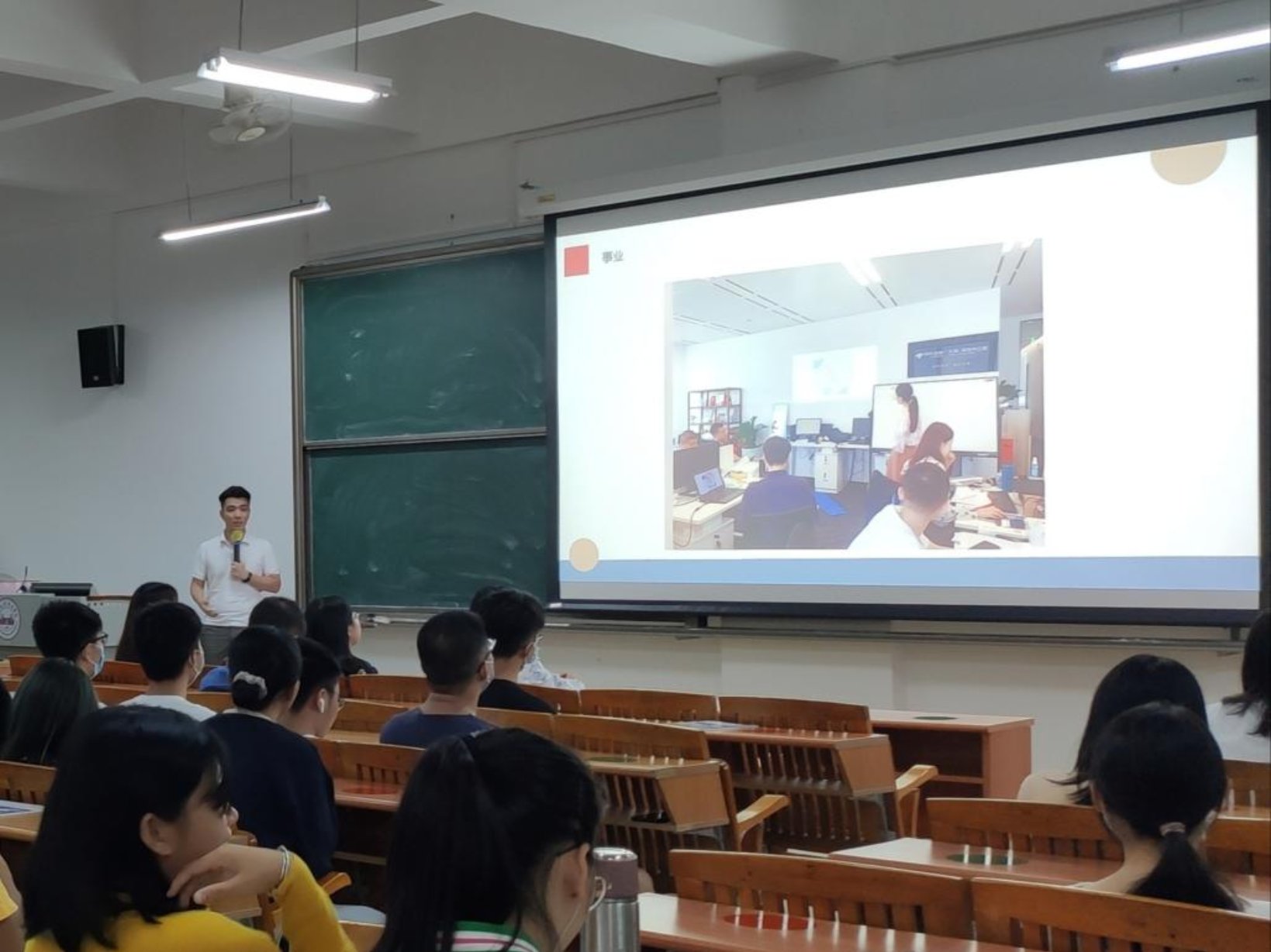 第二部分由陈宇聪师兄主讲,他结合自己毕业于瑞士酒店管理教育集团的亲身经历,向学生分享自己在国外的学习和生活,以及回国之后的工作情况。陈师兄给同学们的三点寄语:一、工作没有好坏之分,选择合适自己的工作才是最重要的;二、只要坚持做一件事,最后一定会收获;三、希望同学们在大学期间塑造胆大有魄力的人格。