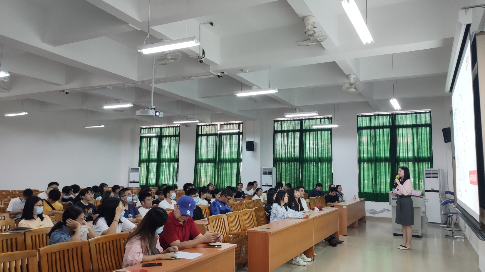 紧接着,彭老师为同学们介绍了学校的地理位置、学校分布等概况。这一部分涉及硕士就读、实习以及就业优势等。同学们听得分外认真。