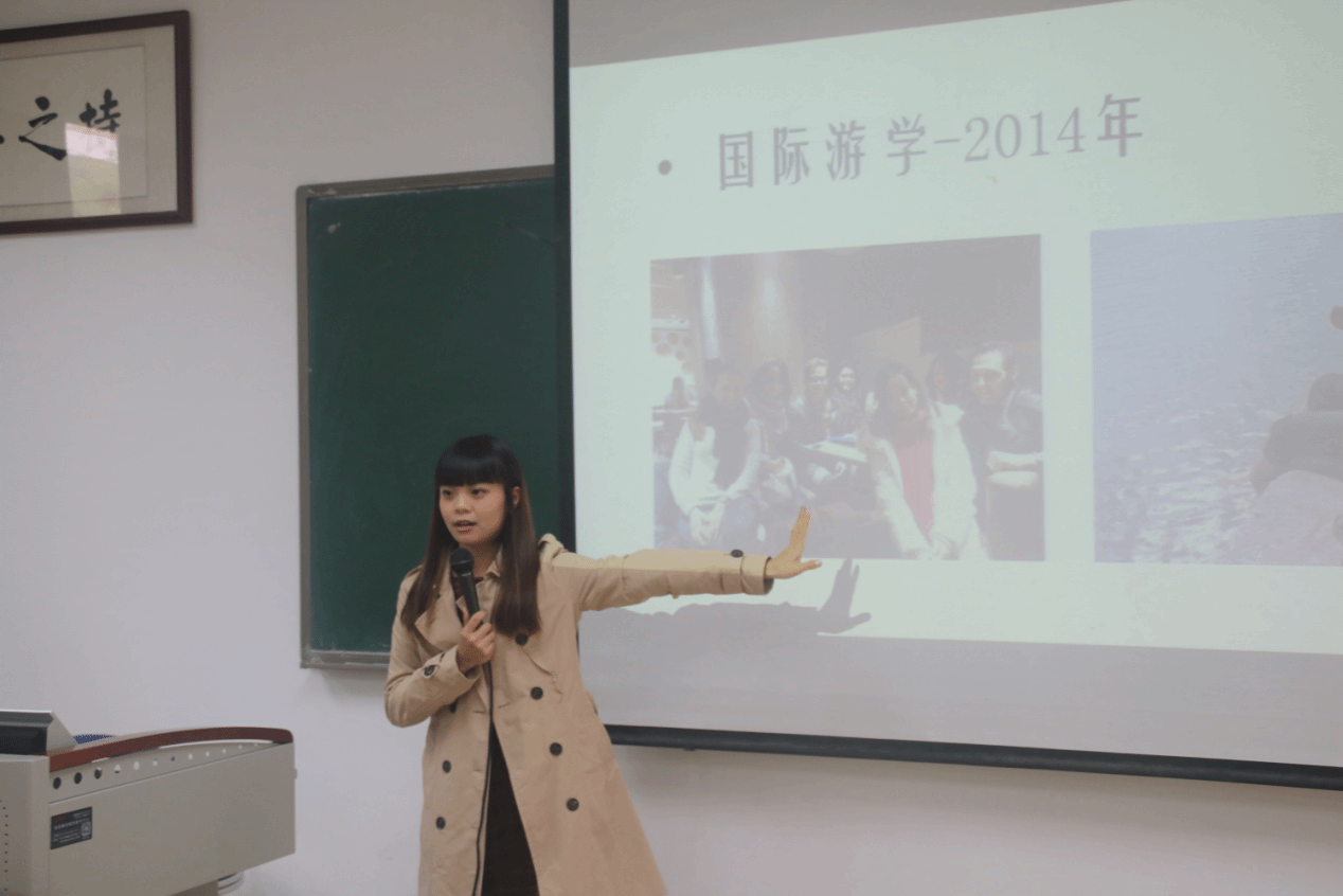 分享会伊始,蒋秀婷学姐首先跟同学们分享了自己大学期间丰富充实的课余生活,包括积极参加各类毽球比赛等。同时她提到在国外游学的经历,这段旅程让她见识到外面世界的多姿多彩,认识了很多来自不同国家非常优秀的朋友。敏而好学的她萌生了以考研提升学识的想法,并且随后为之不断努力,最终达成目标。此外,她还为同学们介绍了面试香港浸会大学的申请留学条件和自己面试是的见闻趣事。