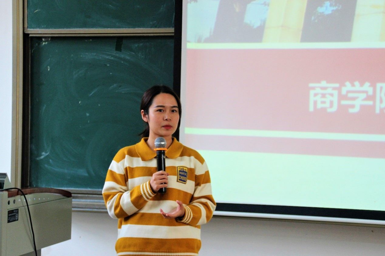 接下来,邓君学姐向大家分享了她的大学生活,因曾担任过主持队干事,如今回到母校回忆起做主持人的经历她仍兴奋不已,这段芬芳的时光一直是开在心里最美的花。对于择业她有自己的想法与规划,她认为在毕业后需要找一份自己感兴趣的工作,这样才能全身心热情地投入工作中,在自己涉及的领域中有所建树。她还建议同学们不要盲目地选择职业岗位,要带着目标完善自己的职业规划,并学会向学长学姐和有经验的长辈询问建议,这样会大大增加成功的概率。最后,她希望同学们要珍惜大学生活,做到不后悔、不抱怨,要像“海绵”一样,不断汲取,努力学习知识,为未来做好积淀。