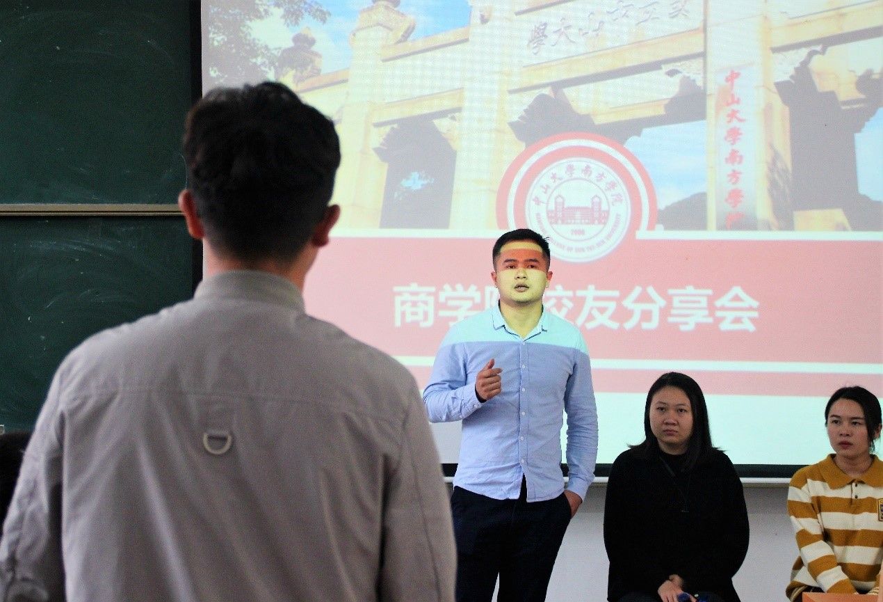 分享会伊始,由赖永林学长上台分享创业成功的经验。他说到大学期间他曾加入多个社团并且积极参加各类活动,这些经历不仅带给了他很多美好的回忆,也为个人提供了深厚的知识与经验的积累。赖永林学长还跟同学们分享了他的创业历程,大学生毕业后也许会感到迷茫,但认准目标后只要肯努力,脚踏实地做好每个阶段的事情,就会有所收获。